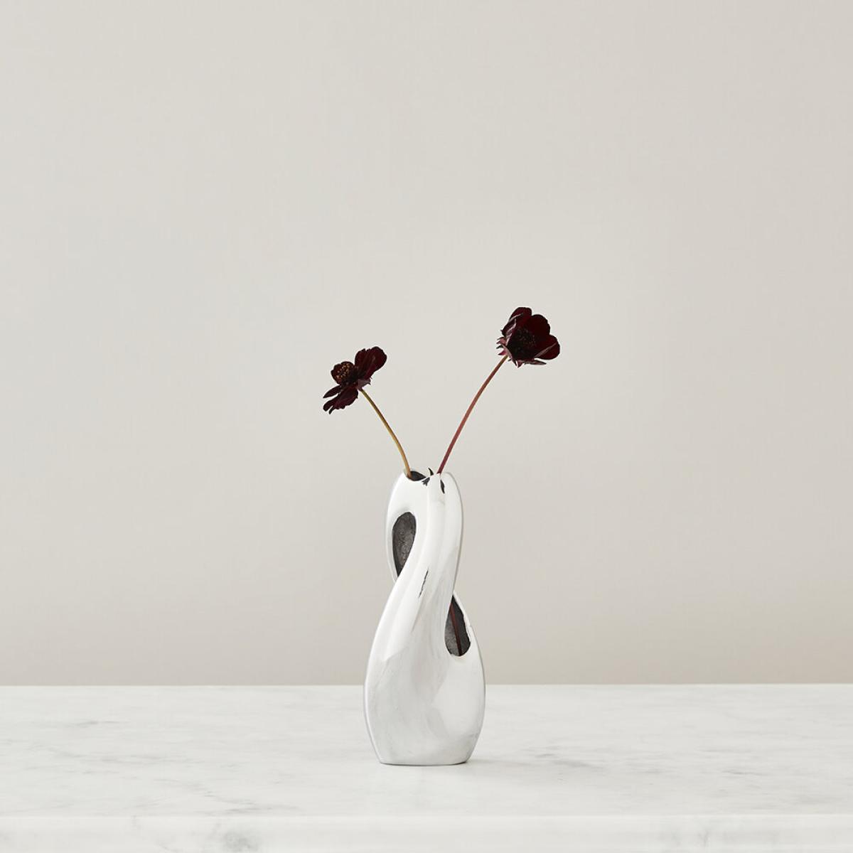 I love this piece because of its contemporary elegance and tactile appeal. The pebble twist vase works beautifully in minimalist or modern interiors, adding a refined metallic accent without overwhelming the space. It’s versatile enough to sit on a sideboard or a coffee table, either holding fresh blooms for colour or standing solo as a sculptural statement. My styling tip would be to pair it with simple greenery or monochrome bouquets to highlight its elegant shape, or to combine it with other textured metallic accessories for a cohesive look. Its silver tone makes it particularly suitable for spaces with cool colour schemes or urban interiors, where it can truly stand out.