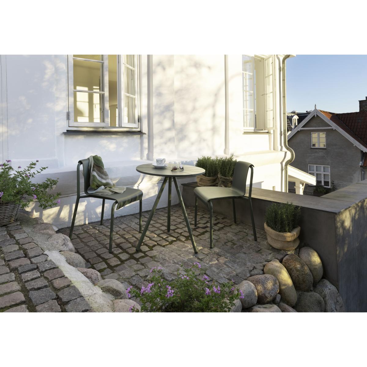 Environmentally-friendly, this chair made with recycled plastic proves that you can give waste a second life, repurposing it and using it to create a new object that is stunning, useful and durable. The Nami's moulded plastic shell is made using plastic household waste (post-consumption) collected in Denmark. This shell is made in Denmark and contains 97% Danish plastic household waste and 3% colour pigments. The elegant curve of the shell evokes images of a wave unrolling on the beach, emphasising the organic expression of this elegant chair. This stackable chair is weather-resistant, and so is suited to both indoor and outdoor use. It has a water drainage hole in the seat. The structure is made from powder-coated steel with an anti-corrosion treatment. Design studio HANS THYGE & CO: "We've stopped looking at waste as a problem and started looking at it as the resource that it is. We've created a chair with a shell made from Danish plastic household waste. ".