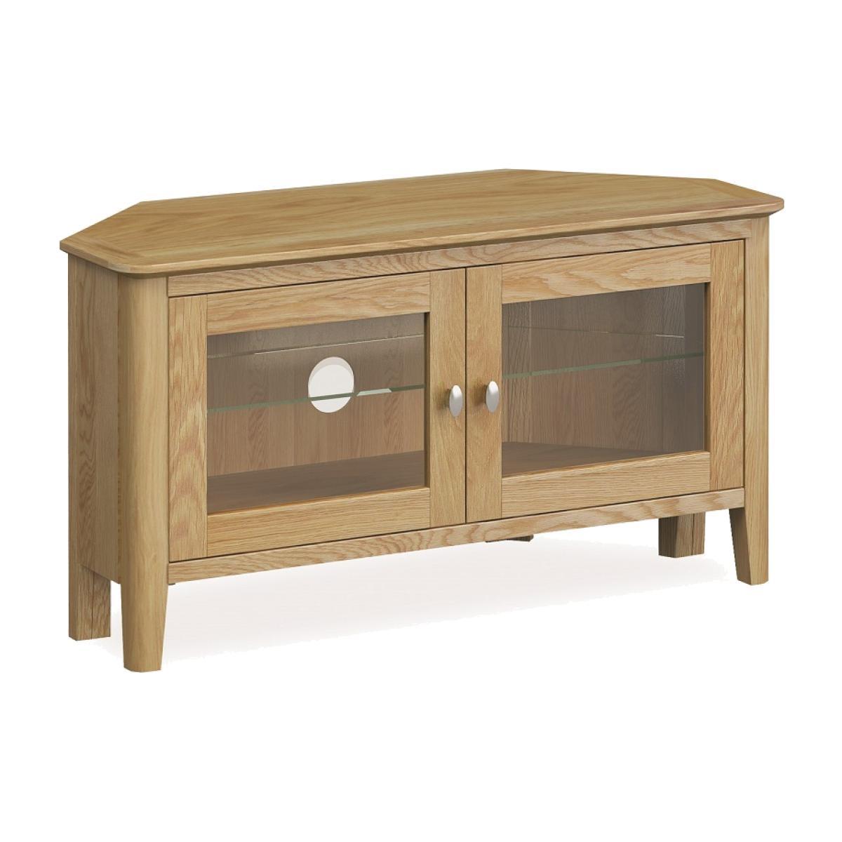 I love this corner TV stand because of its natural oak finish, which adds warmth and texture to a variety of interiors. It's versatile enough to work well in both contemporary and rustic spaces, especially when paired with neutral tones or earthy palettes. Practical styling tips include using the glass-fronted doors to display decorative items or media essentials, while the top surface can hold a statement lamp or plant to create visual interest. Its compact corner design makes it ideal for maximising space in smaller living areas, and the neutral colour allows for easy integration with existing furnishings. Overall, it’s a functional yet attractive piece that will keep media essentials organised while enhancing the room's aesthetic.