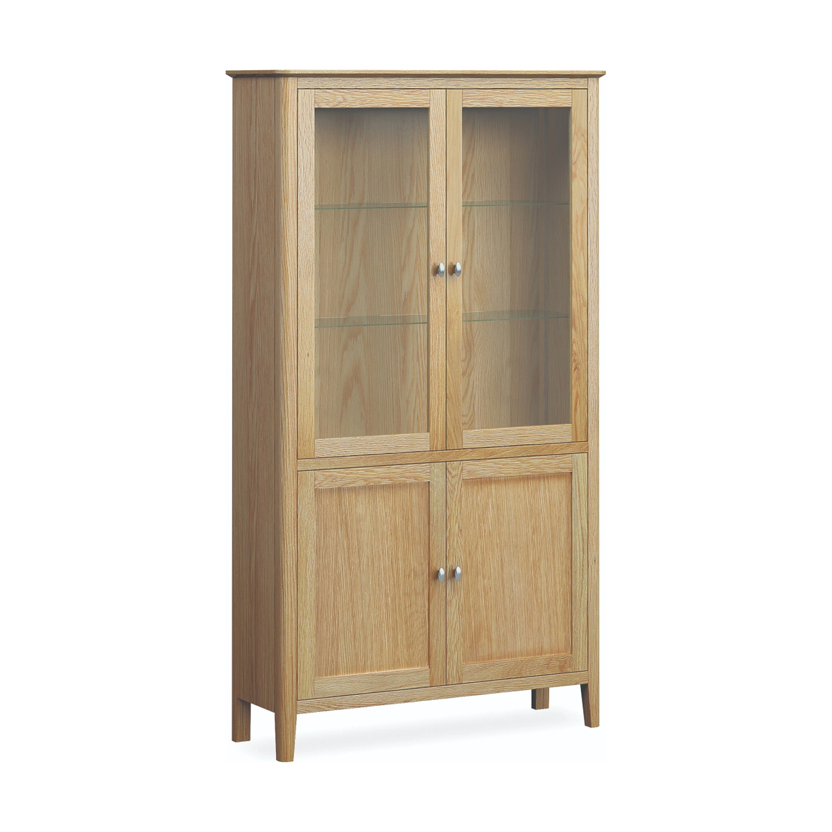 The Nancy Display Cabinet has a lacquered oak top with a pale oak finish to the rest of the unit. Featuring 2 solid cupboard doors at the bottom and2 larger glazed cupboard doors above. The softened corners to the top provide a cosy feel, yet the clean lines and pale oak add asimple modern twist.