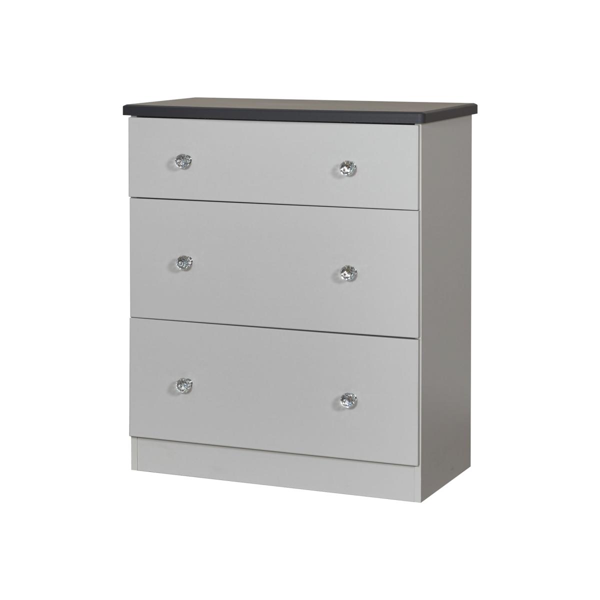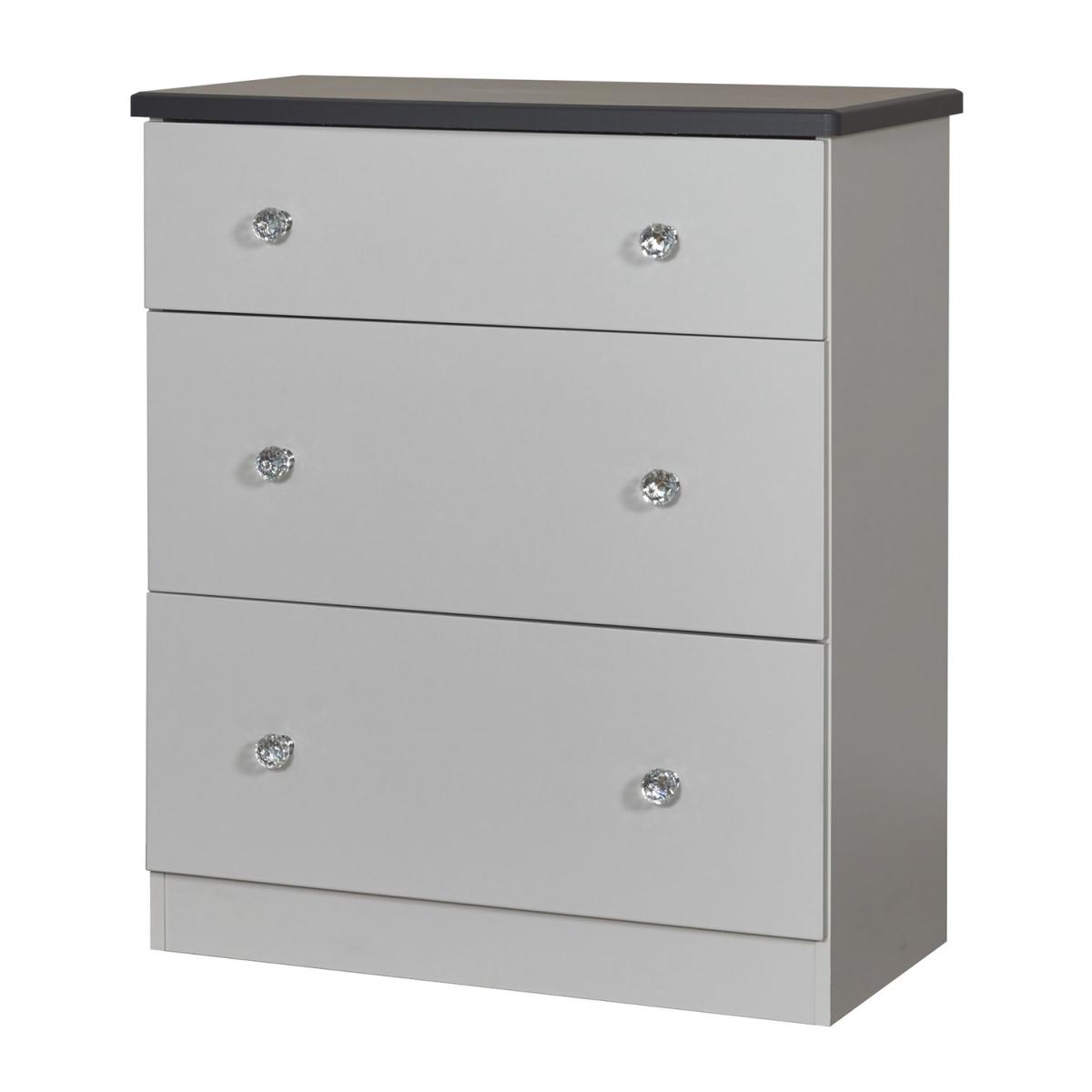 I really rate this grey three-drawer chest for its clean lines and versatile finish - the soft grey works brilliantly against darker accents or warmer timber tones. It suits Scandinavian, minimalist or modern-classic interiors, slipping neatly into bedrooms, hallways or even a home office where extra storage is needed without bulk. Styling-wise, keep the top surface purposeful: a small table lamp and a shallow tray for daily bits (keys, phone) in hallways, or a simple mirror and a couple of decorative books in a bedroom. The crystal-effect handles add a subtle hint of sparkle, so pair it with brushed-metal fittings elsewhere in the room to tie everything together.