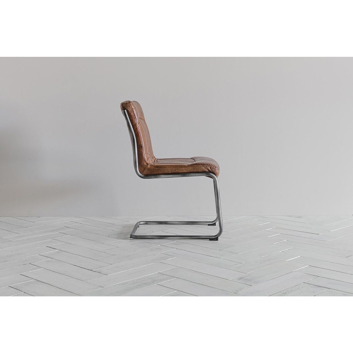I’m a fan of this vintage-style leather chair because its rich brown tone and slim cantilever frame add warmth without overwhelming a room. It works equally well in industrial lofts, mid-century setups or contemporary spaces, especially when you need a statement piece that still reads as pared-back. For styling, pair it with a simple black-metal side table or a reclaimed-wood console to echo the frame’s lines. Anchor it on a neutral wool rug and drape a lightweight throw over the back to soften the look. It also sits nicely beside a clean-lined bookshelf or in a cosy reading corner with an adjustable floor lamp for a balanced, lived-in feel.