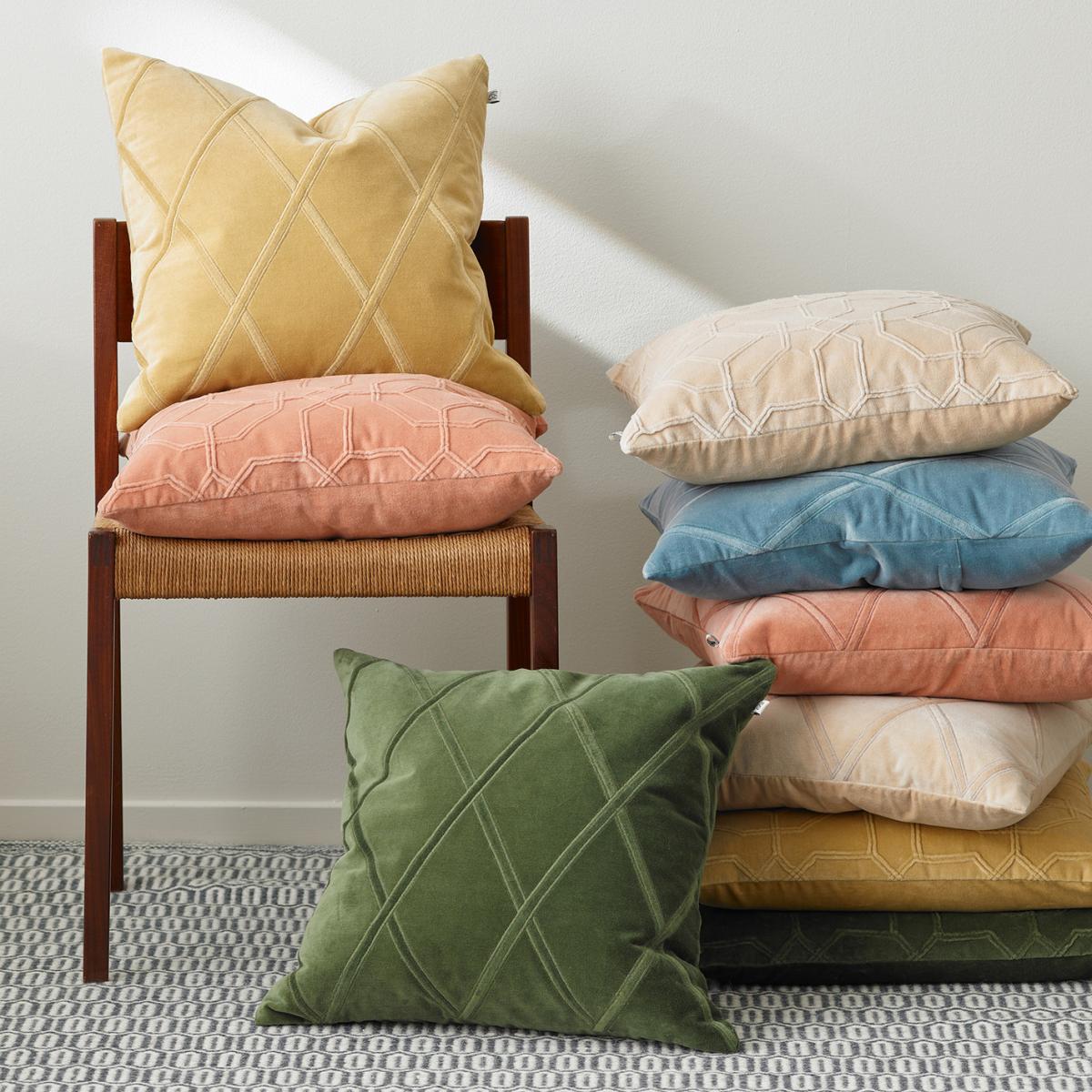 The Nandi cushion cover 50x50 cm from the Swedish-Indian brand Chhatwal & Jonsson. This cushion cover has geometric patterns on one side, which gives a three-dimensional structure and a single-colour back. The Nandi cushion cover fits most styles of decor and is just as lovely on a bed as it is on a sofa. Pillow not included.