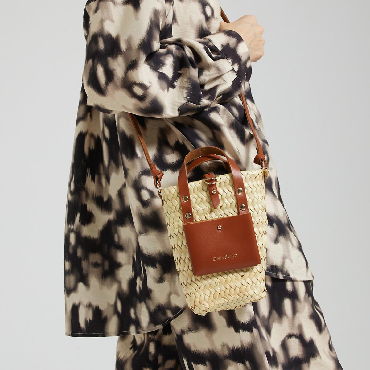 Nano Panier basket bag crafted in doum palm tree leaves and leather with a tan pouch. The timeless basket bag gets a chic style update with boho-inspired details and practical features, in a compact size that's just perfect for a girl's everyday essentials. Product details • Type of bag: tote bag • Suitable for the beach • Carry over the shoulder • Carry in your hand • Handles • Main fastening: buckle • Size: 10 x 17 x 3cm • A little notebook stamped with the brand's logo comes free with this bag. Fabric content and care advice • 60% doum palm tree leaves, 40% leather • Please refer to the care instructions on the product label