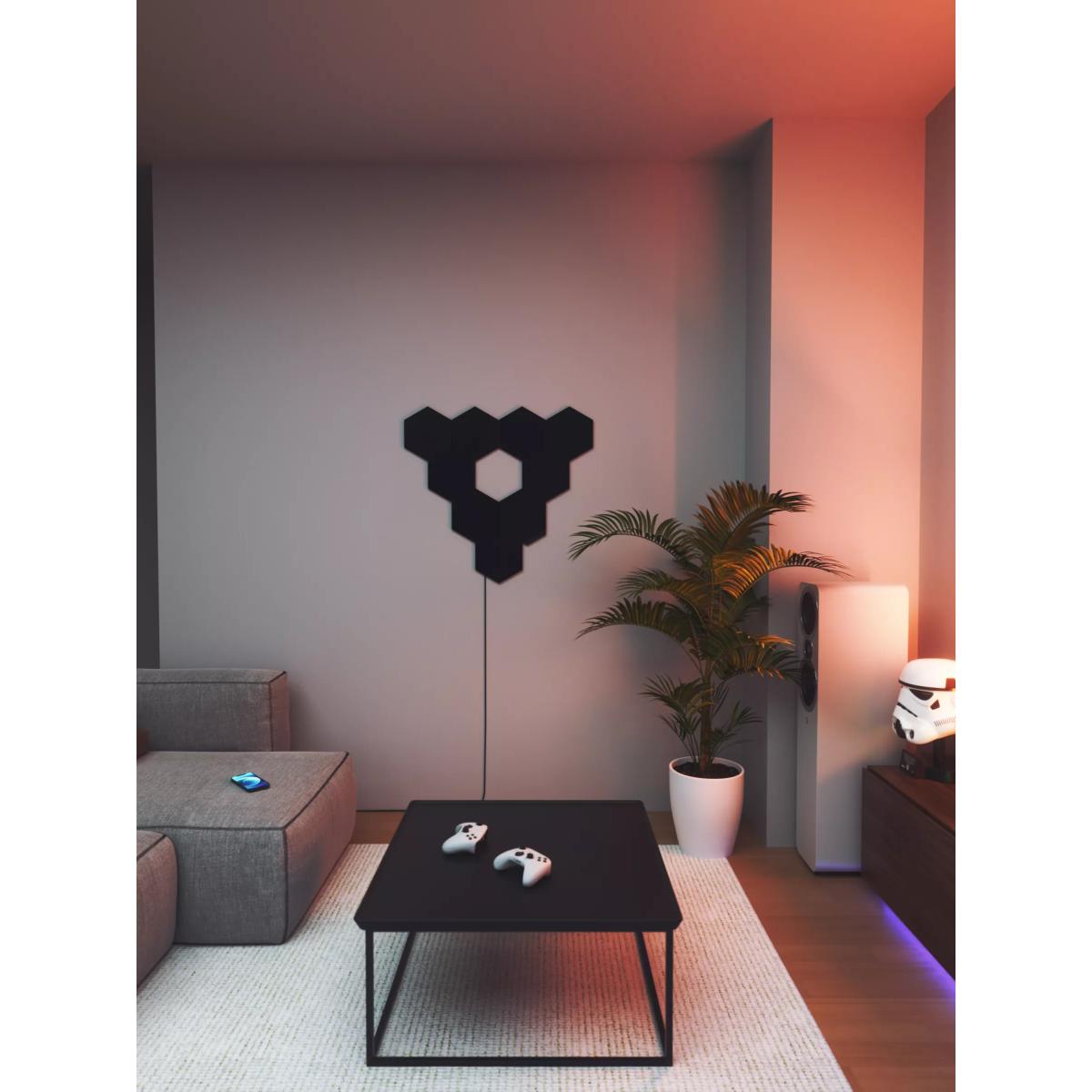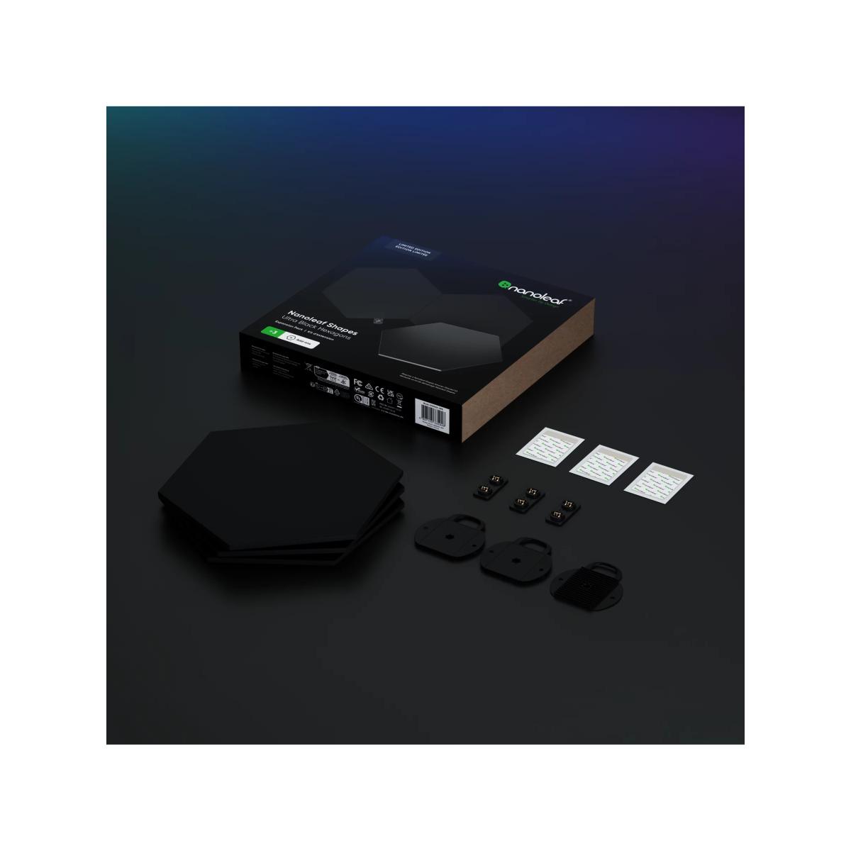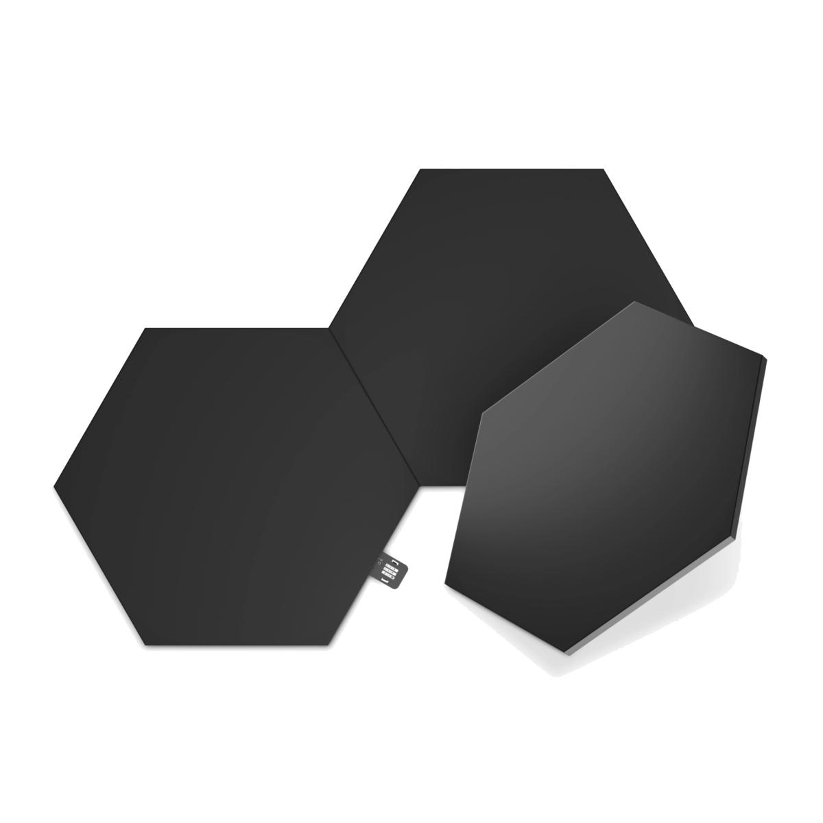 Unleash smart lighting like you've never seen before with the limited edition Nanoleaf Shapes Ultra Black Hexagons. Featuring a 360 Black finish including black mounting and power accessories to design and create your own accent or statement piece. Enjoy the sleek black finish while off, or switch them on for vibrant high-contrast RGB lighting animations. PSTI Support 5 years. Key features: Personalise your layout and explore different panel combinations. Use the Layout Assistant in the Nanoleaf App or visit the Design Inspirations Library for guidance and inspiration Enjoy touch-enabled experiences. Watch light panels respond dynamically to your touch or play interactive games Connect it with your music and animate your favourite songs. The Pop Rocks Rhythm Scene enables your light to move to the beat of the music 16M+ colours with 1200K-6500. K temperature range, plus dimmable white light from candlelight to dayight Enjoy full customisation with the compatible App, free to download on Android, iO. S and Desktop. Create scenes, set light schedules, or share your scenes with the user community Compatible with Apple Home. Kit, Amazon Alexa, Google Assistant and will respond to simple voice commands Works right out of the box without Wi Fi with hundreds of pre-saved Scenes What's included: 3 Hexagon panels Linkers Mounting tapes Welcome guide
