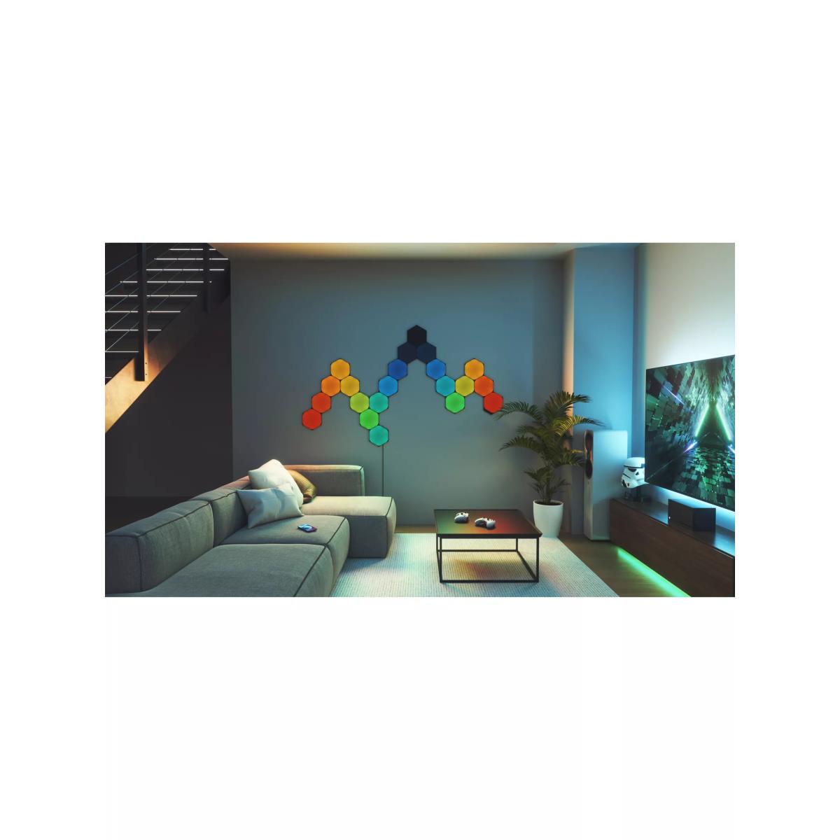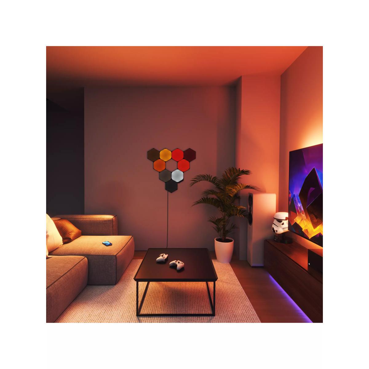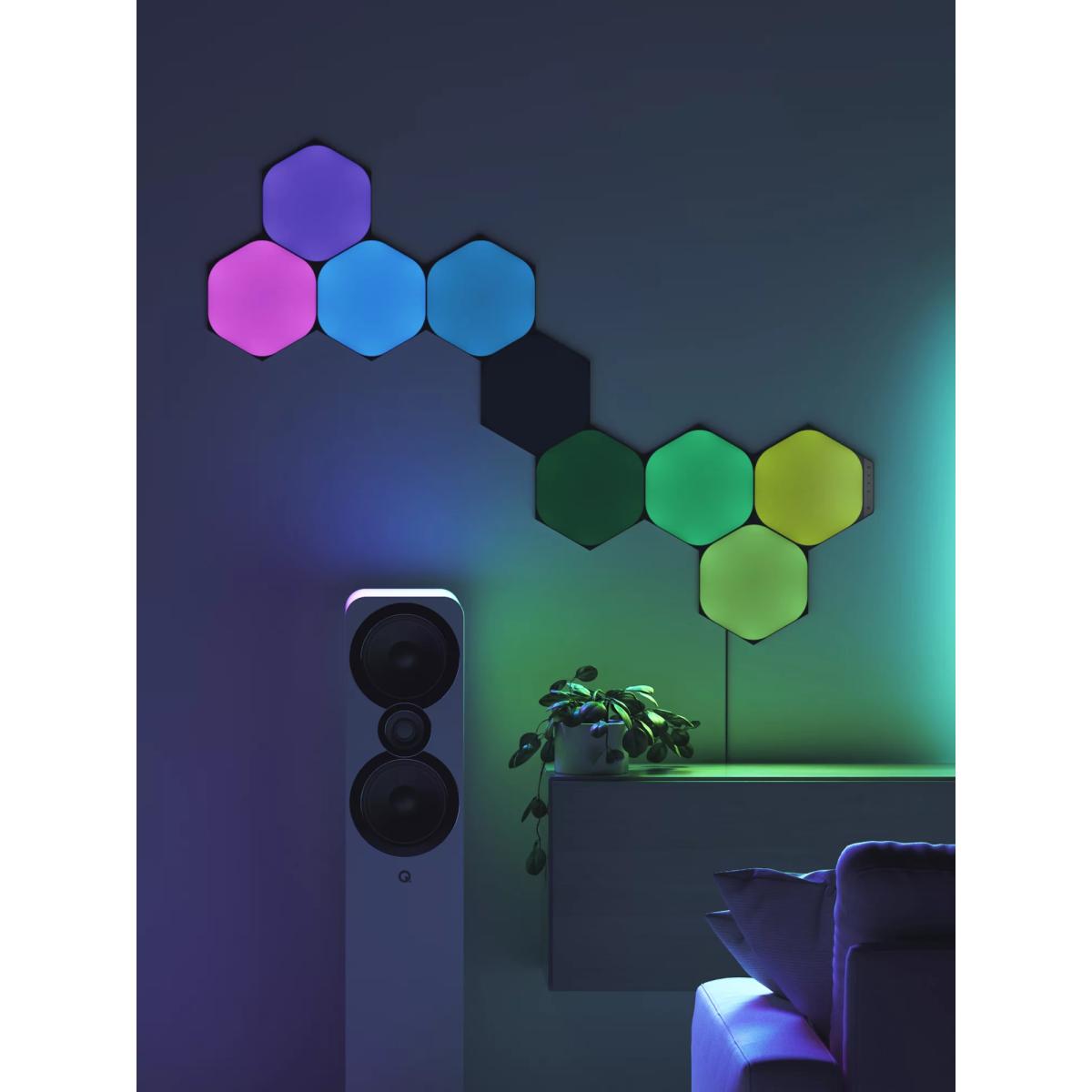 Unleash smart lighting like you've never seen before with the limited edition Nanoleaf Shapes Ultra Black Hexagons. Featuring a 360 Black finish including black mounting and power accessories to design and create your own accent or statement piece. Enjoy the sleek black finish while off, or switch them on for vibrant high-contrast RGB lighting animations. PSTI Support 5 years. Key features: Personalise your layout and explore different panel combinations. Use the Layout Assistant in the Nanoleaf App or visit the Design Inspirations Library for guidance and inspiration Enjoy touch-enabled experiences. Watch light panels respond dynamically to your touch or play interactive games Connect it with your music and animate your favourite songs. The Pop Rocks Rhythm Scene enables your light to move to the beat of the music 16M+ colours with 1200K-6500. K temperature range, plus dimmable white light from candlelight to dayight Enjoy full customisation with the compatible App, free to download on Android, iO. S and Desktop. Create scenes, set light schedules, or share your scenes with the user community Compatible with Apple Home. Kit, Amazon Alexa, Google Assistant and will respond to simple voice commands Works right out of the box without Wi Fi with hundreds of pre-saved Scenes What's included: 3 Hexagon panels Linkers Mounting tapes Welcome guide