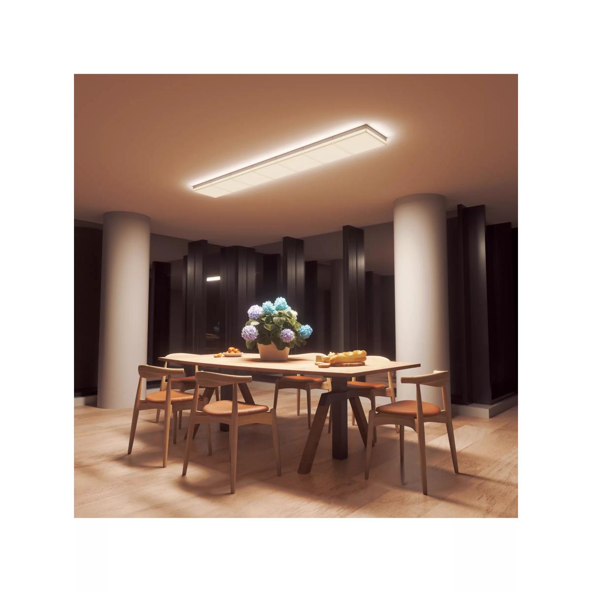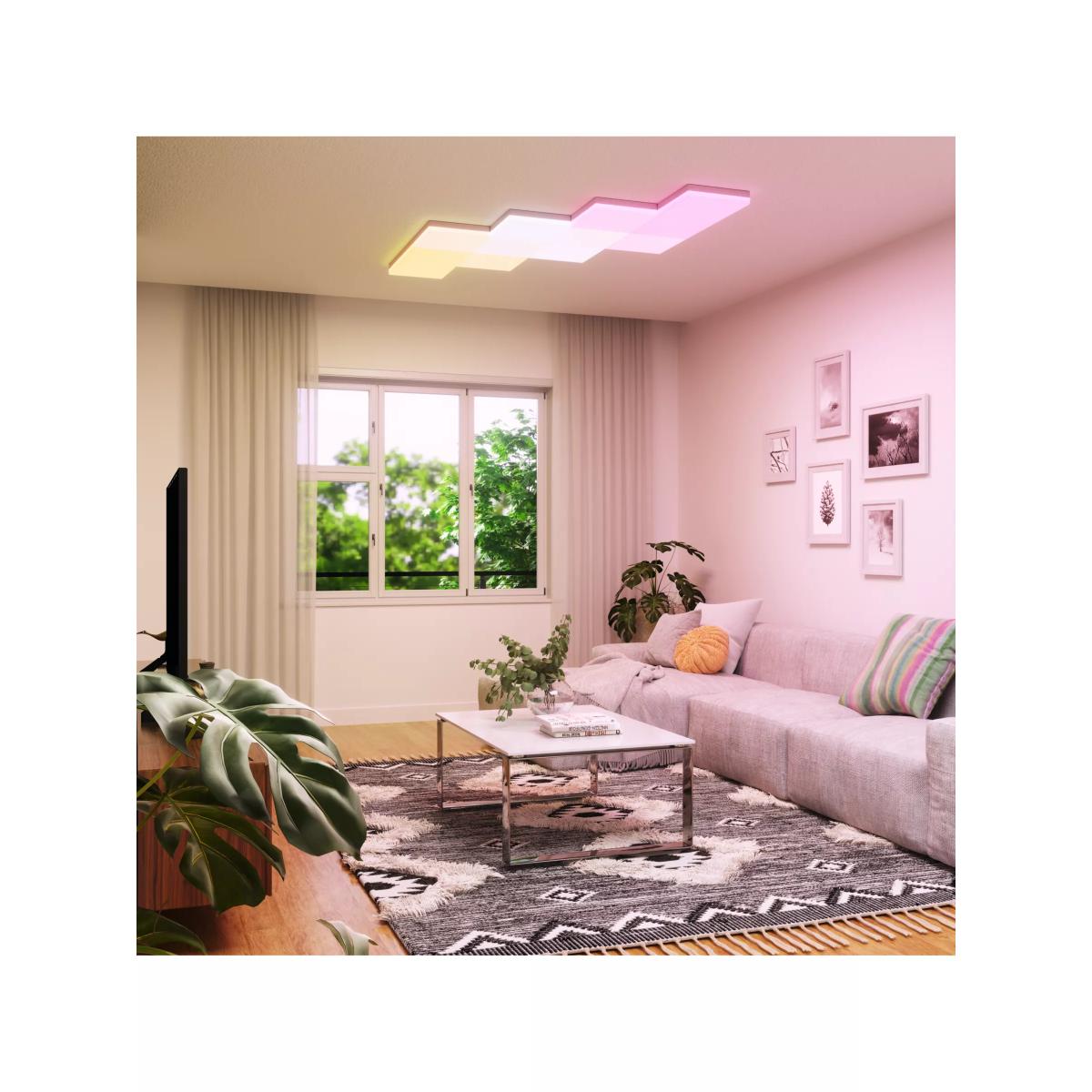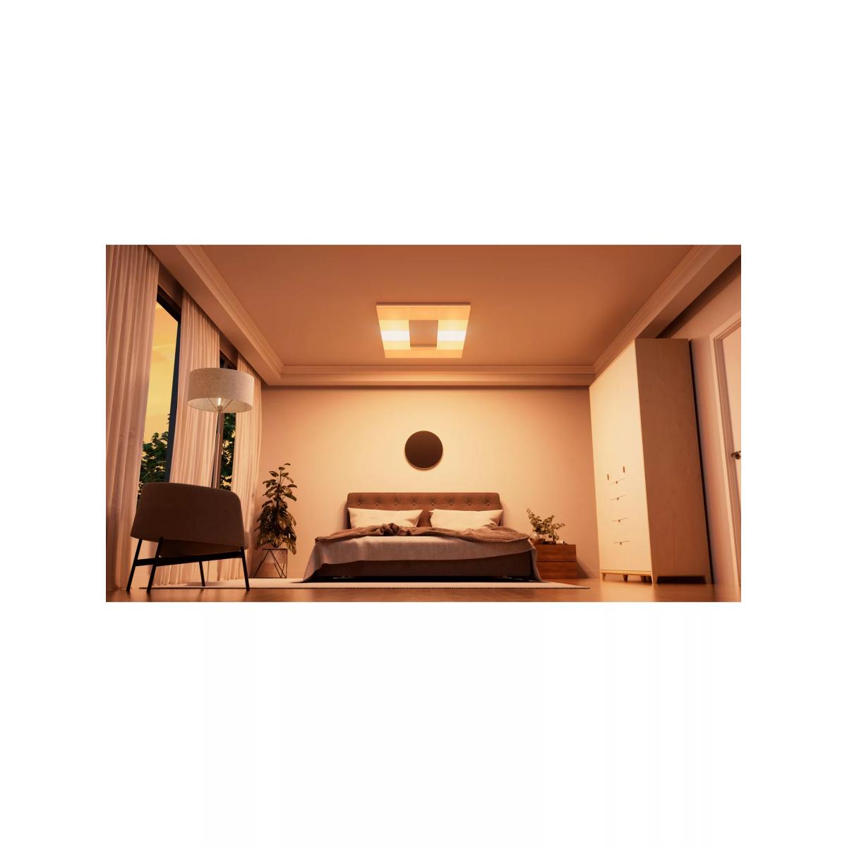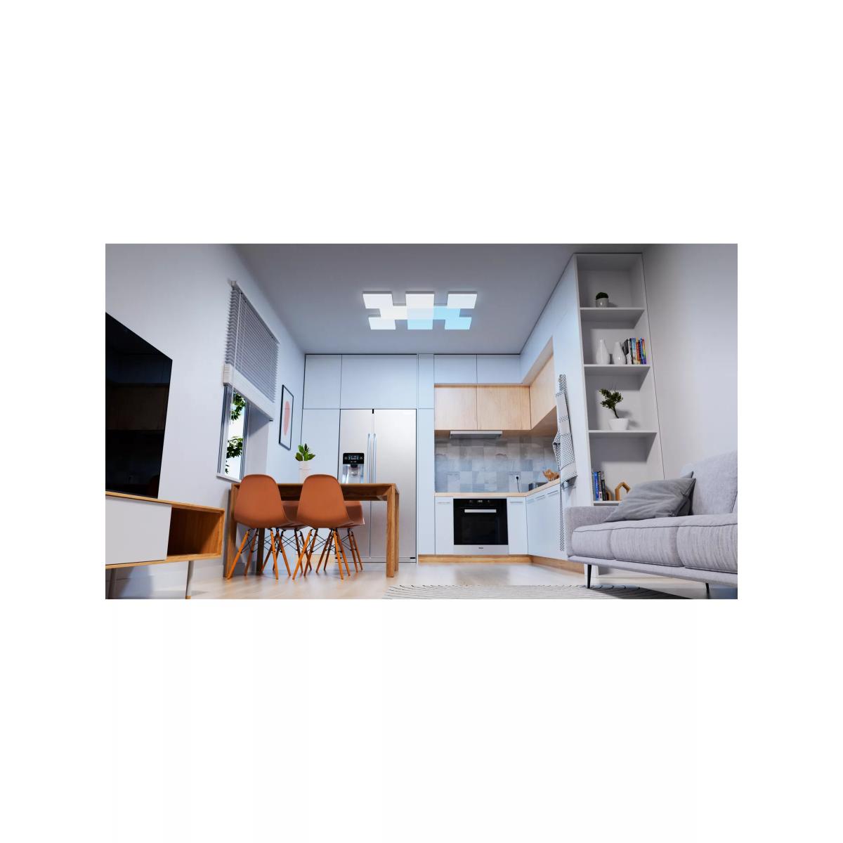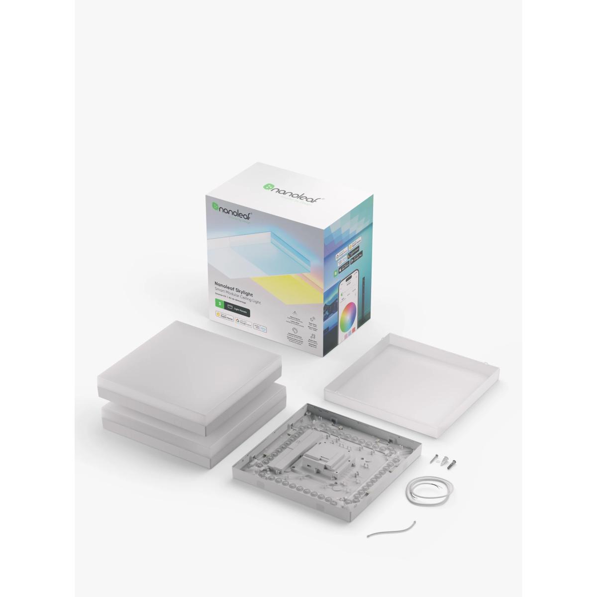 Take your lighting to new heights with Nanoleaf Skylight, a modular flush-mounted smart ceiling light panel with features that are both functional and fun. Start small or go as big as you want by customising your ceiling layout with Skylight's modular squares. Hard-wire one square, then connect up to 100 additional squares to create endless unique designs. Nanoleaf Skylight produces diffused multi-point lighting to mimic the natural sky within your home. Enjoy standard lighting features, such as adjustable brightness and dimming, along with Nanoleaf's advanced features: 16. M+ colour options and tunable whites, Music sync, Screen Mirror, Dynamic Animated Scenes, Schedules and more. Pack includes 3 lightbulb square panels. PSTI Defined 5 years. Must be installed by a qualified electrician in accordance with local regulations and codes.