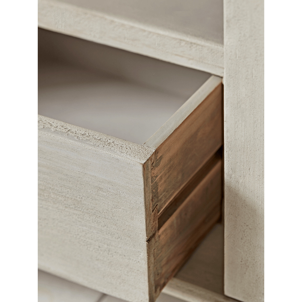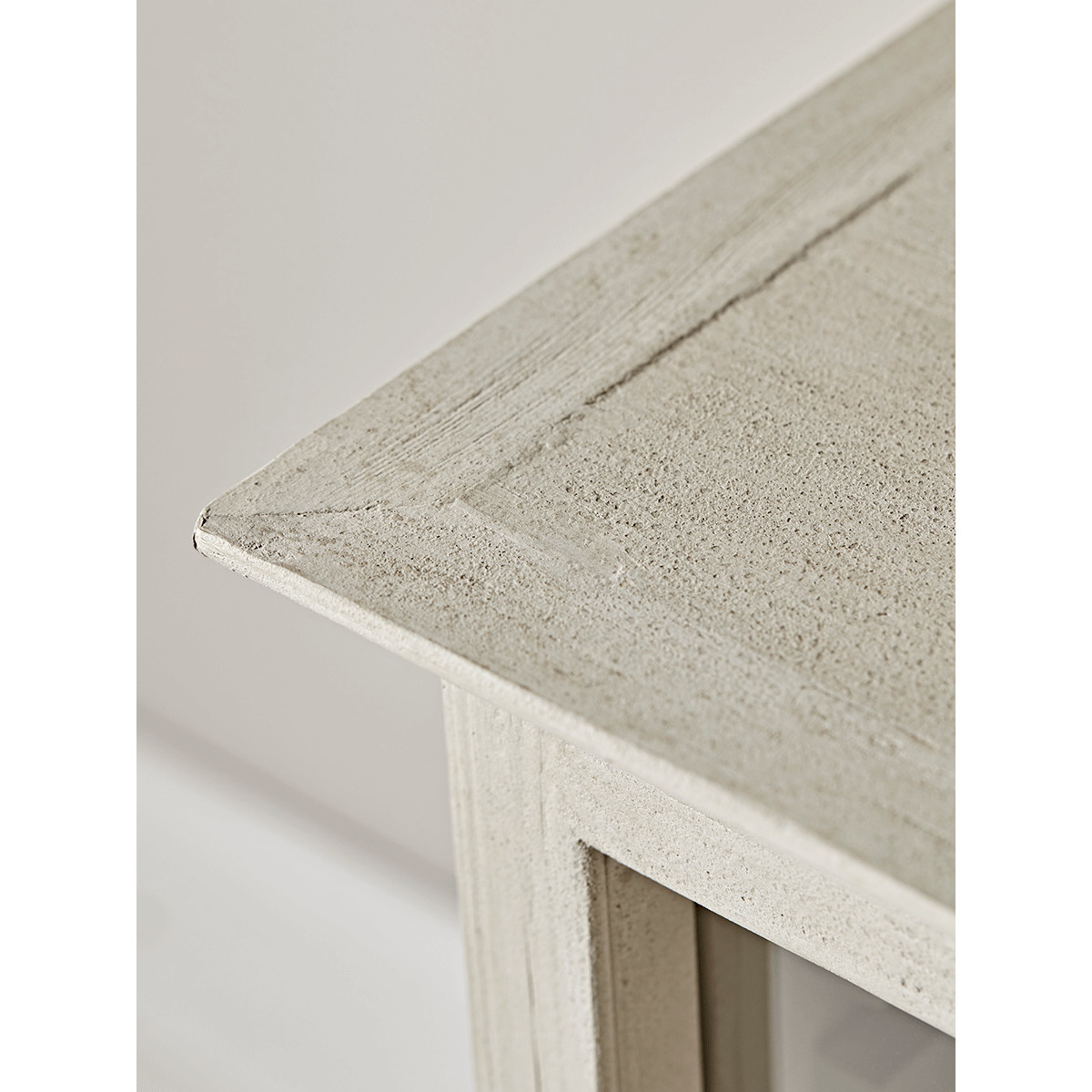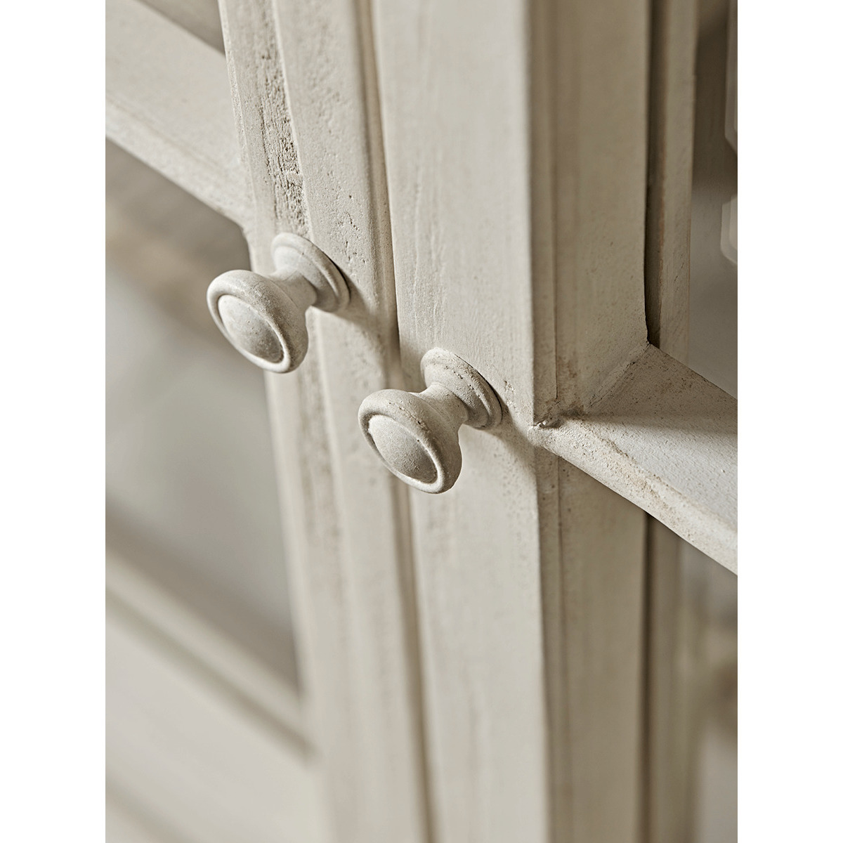 Our Nantes Sideboard speaks of the interior of a coastal retreat, white washed and airy, with a laid back quality. Crafted from repurposed pine in a white wash finish, each piece has unique markings for a natural, aged feel. Three window framed glazed doors feature to the front of the piece, to ample cupboard space beyond for both storage and display. Within each is a wonderful adjustable shelf system, and generous bottom drawer, all crafted from solid wood. Finished with a corniced top and wooden legs, this is a practical addition to the home guaranteed to add centrepiece style. Our. Nantes Cabinet. Is also available in this range.