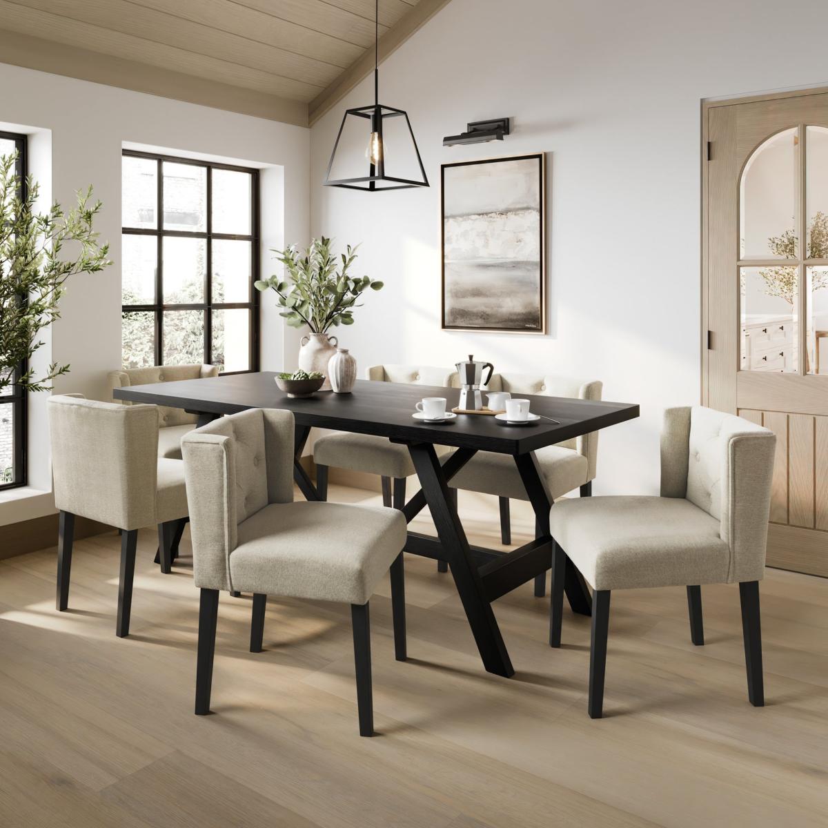 I’m a big fan of the Nantucket table in black because its clean lines and sturdy trestle base bring an understated edge to a variety of schemes - think modern farmhouse, pared-back Scandi or even a pared-down industrial loft. The matt black finish acts as a neutral anchor, so you can layer light rattan chairs for contrast or match with steel-frame seating for a more urban vibe. For styling, keep the tabletop clutter-free: a simple linen runner or a low-profile ceramic bowl filled with seasonal foliage will do the job. Position it beneath a slim-line pendant light to emphasise the table’s length, and if space allows, swap one side for a bench to introduce a relaxed, informal feel.