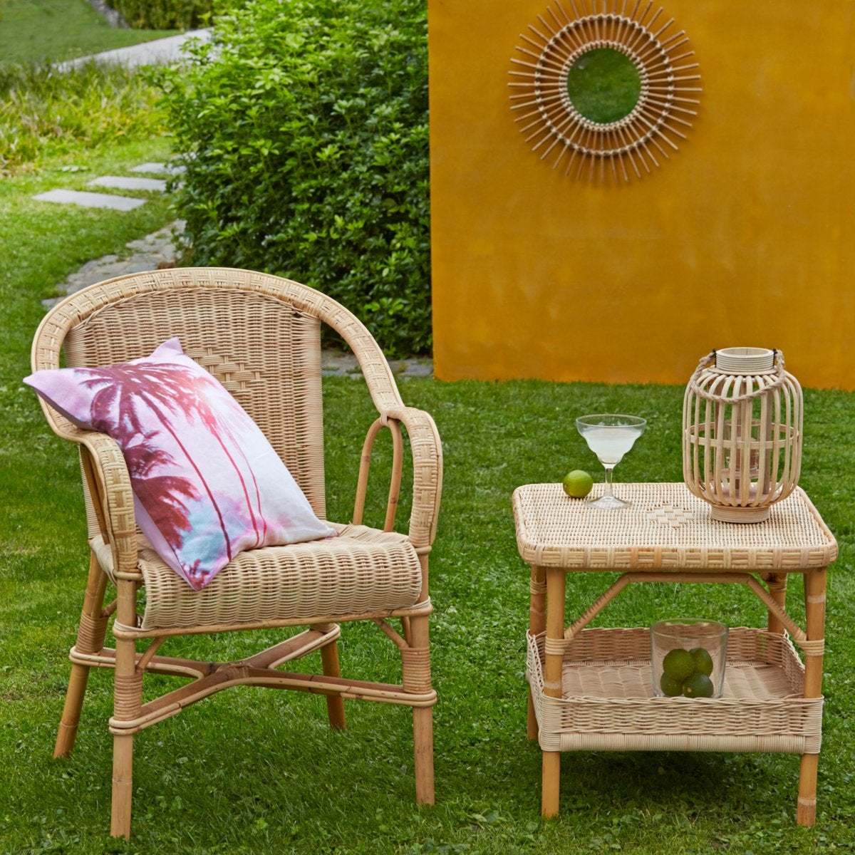 I love this little rattan table for its effortless coastal vibe and versatility. It works particularly well in relaxed, casual interiors such as sunrooms, conservatories, or outdoor spaces that extend to indoor living areas. Its natural rattan texture adds warmth and a touch of tropical charm, making it great for layering with simple accessories like candles, books, or small plants. Practical styling tips include using it as a centrepiece on a soft rug or pairing it with other wicker or wooden furniture for a cohesive look. Its lower shelf is perfect for storing magazines or gardening essentials, keeping the space tidy yet inviting. Overall, it’s a charming piece that can easily transition between laid-back outdoor settings and cosy indoor nooks.