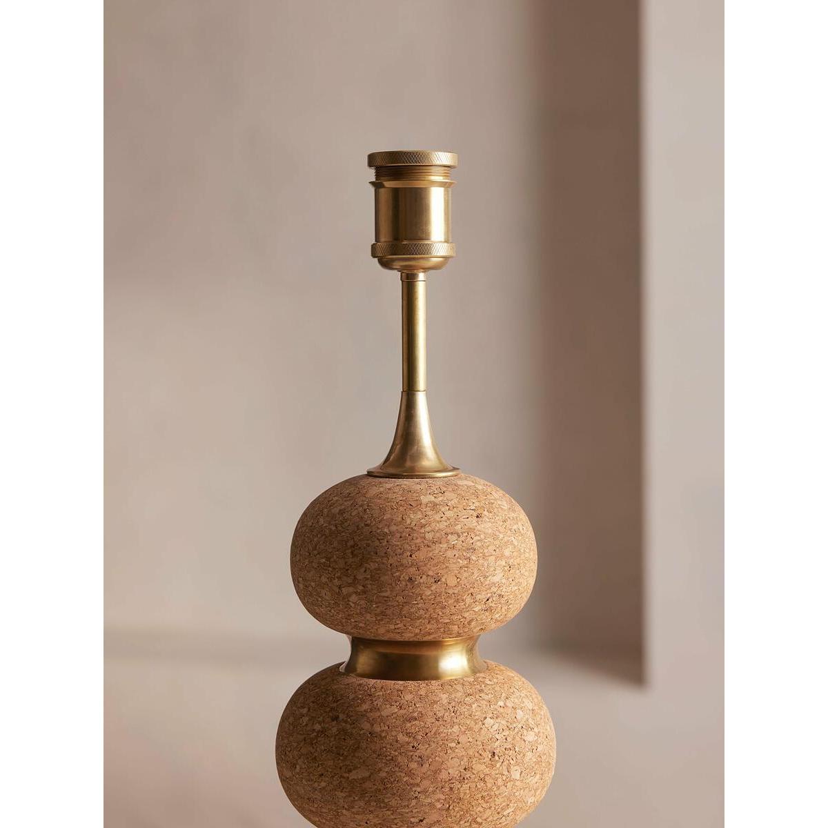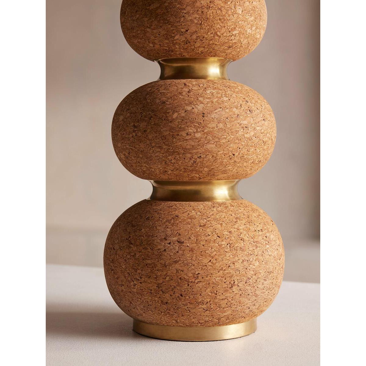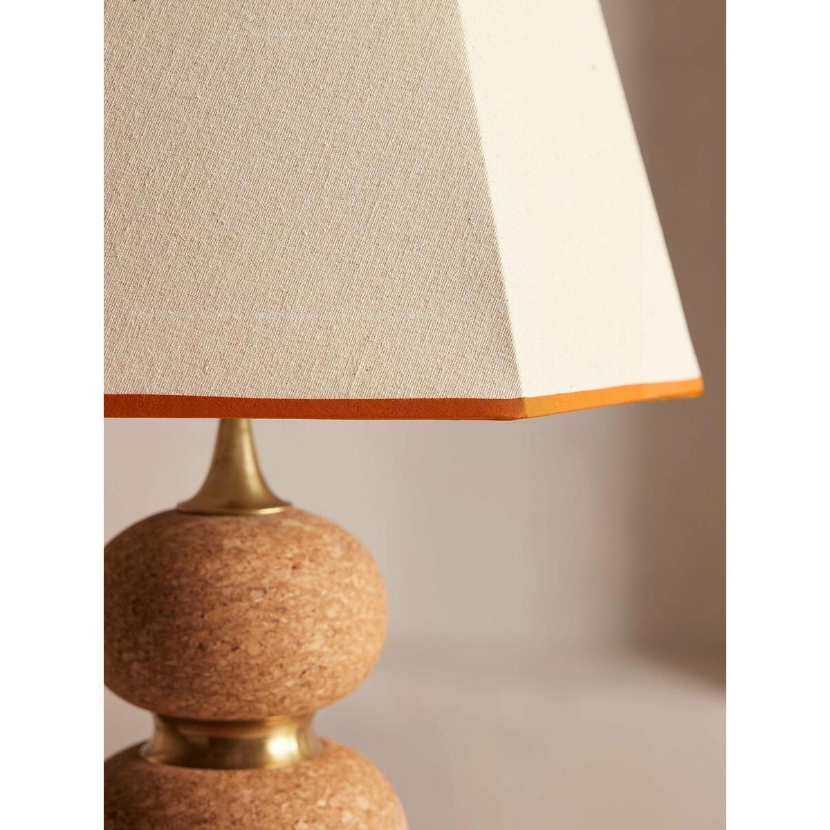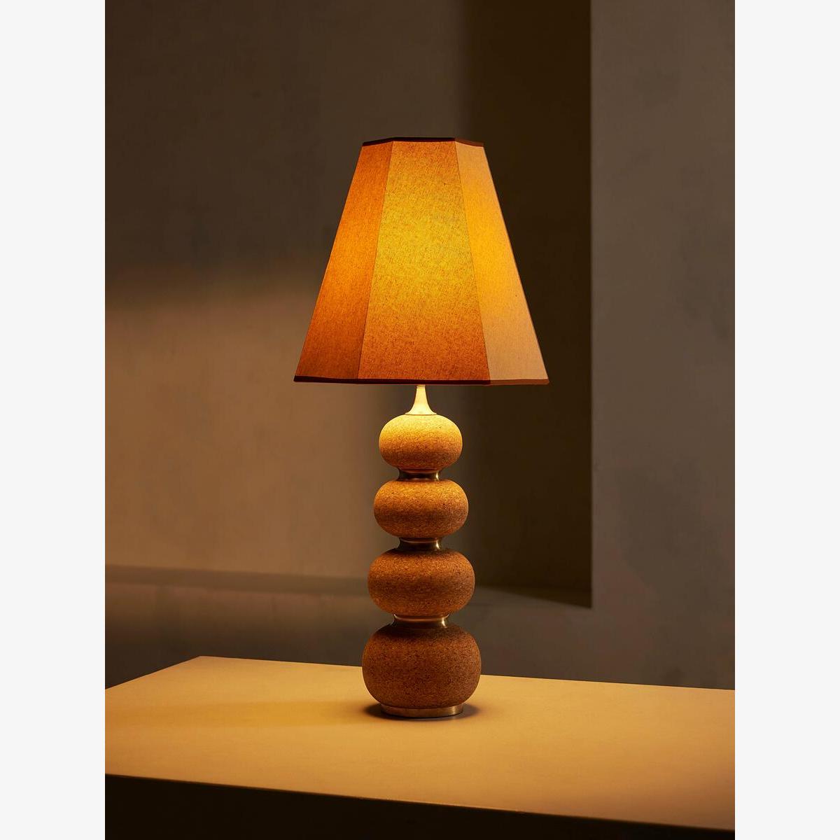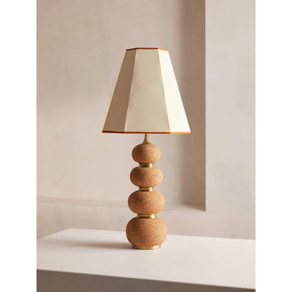 The Naomi table lamp plays to our use of mixing materials and shapes when it comes to lighting. A tiered cork base has been partitioned with real brass collars for a sculptural silhouette, while the boxy linen shade and rust-coloured trim adds a subtle pop of colour to this unique piece, inspired by vintage lighting styles found in Soho House Holloway. Vintage-inspired table lamp Tiered cork base Sculptural silhouette Real brass collars 100% linen shade with trim Inspired by Soho House Holloway