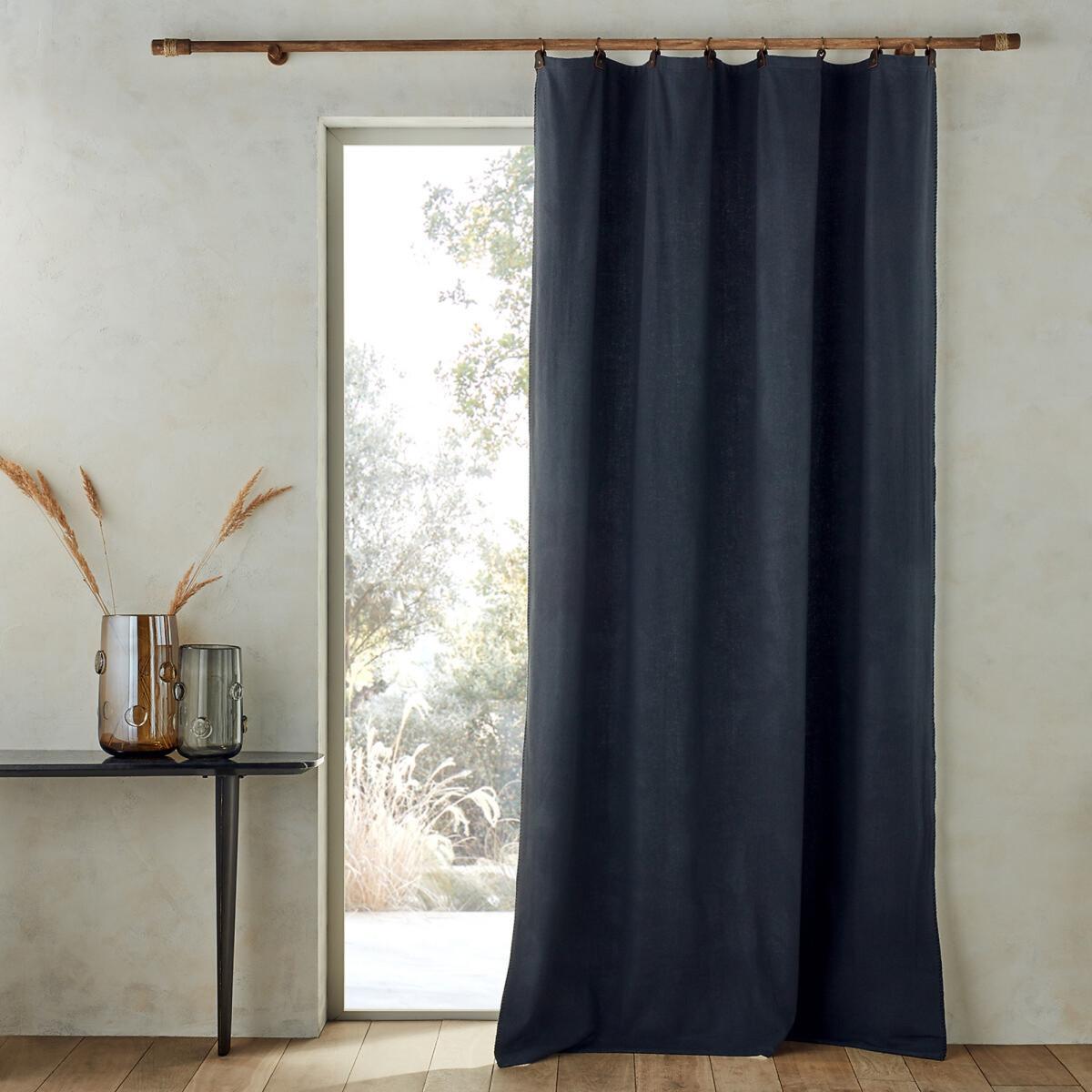Naomyt Wool Mix Single Curtain with Leather Tabs