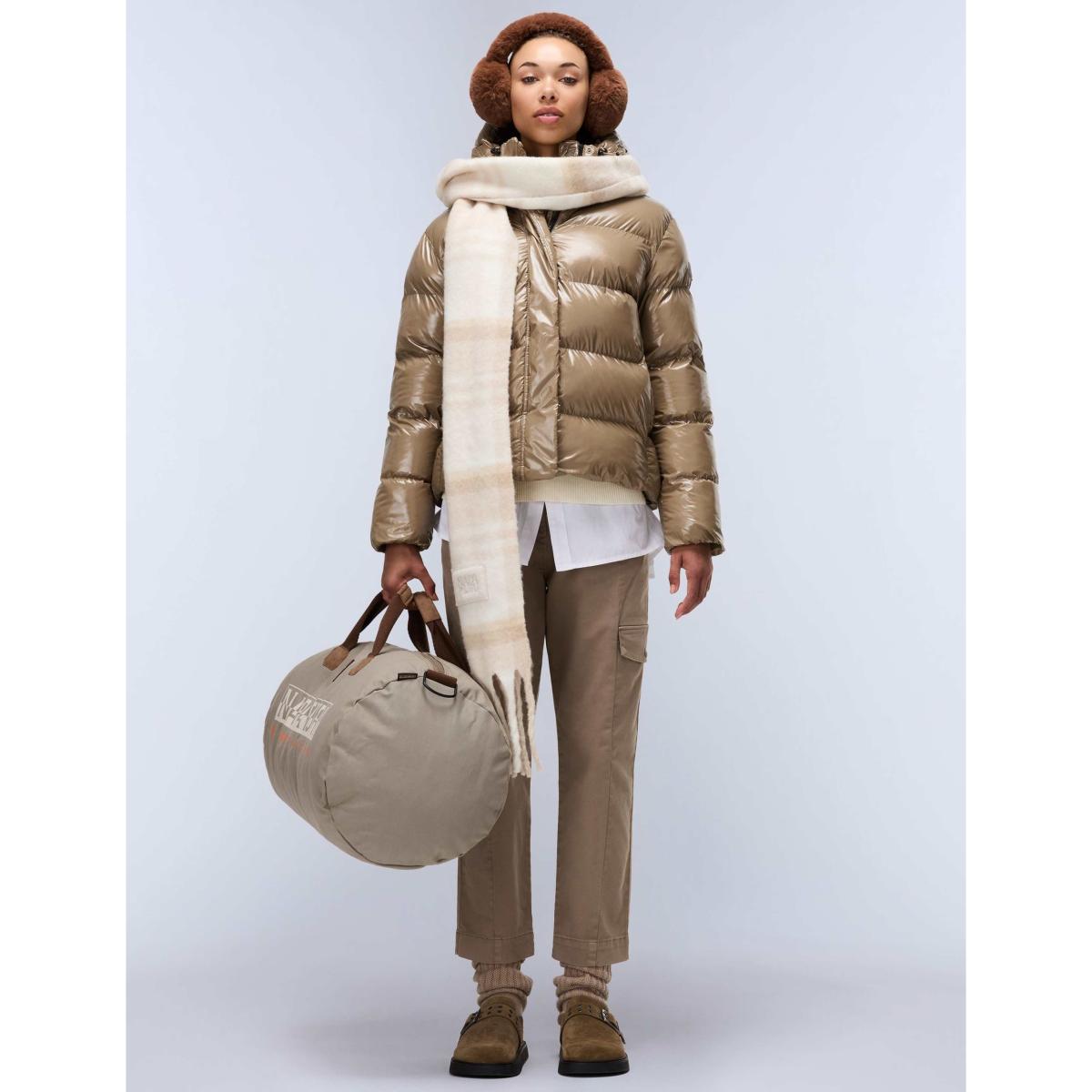 The Napapijri puffer is a sleek, versatile piece that works well in contemporary, minimalist interiors, especially those with monochrome or urban-inspired palettes. Its glossy black finish adds a touch of modern edge, making it ideal for spaces that lean towards industrial or sleek aesthetics. When styling, consider pairing it with neutral or dark-toned accessories to echo its colour and texture-think matte cushions or metallic accents to enhance its shine. Practical tips include using it as a display piece in a wardrobe or entrance hall to make a bold statement, or incorporating it into a themed room that celebrates outdoor or sporty elements with understated, functional decor. It’s a clever way to blend fashion-forward design with everyday practicality.