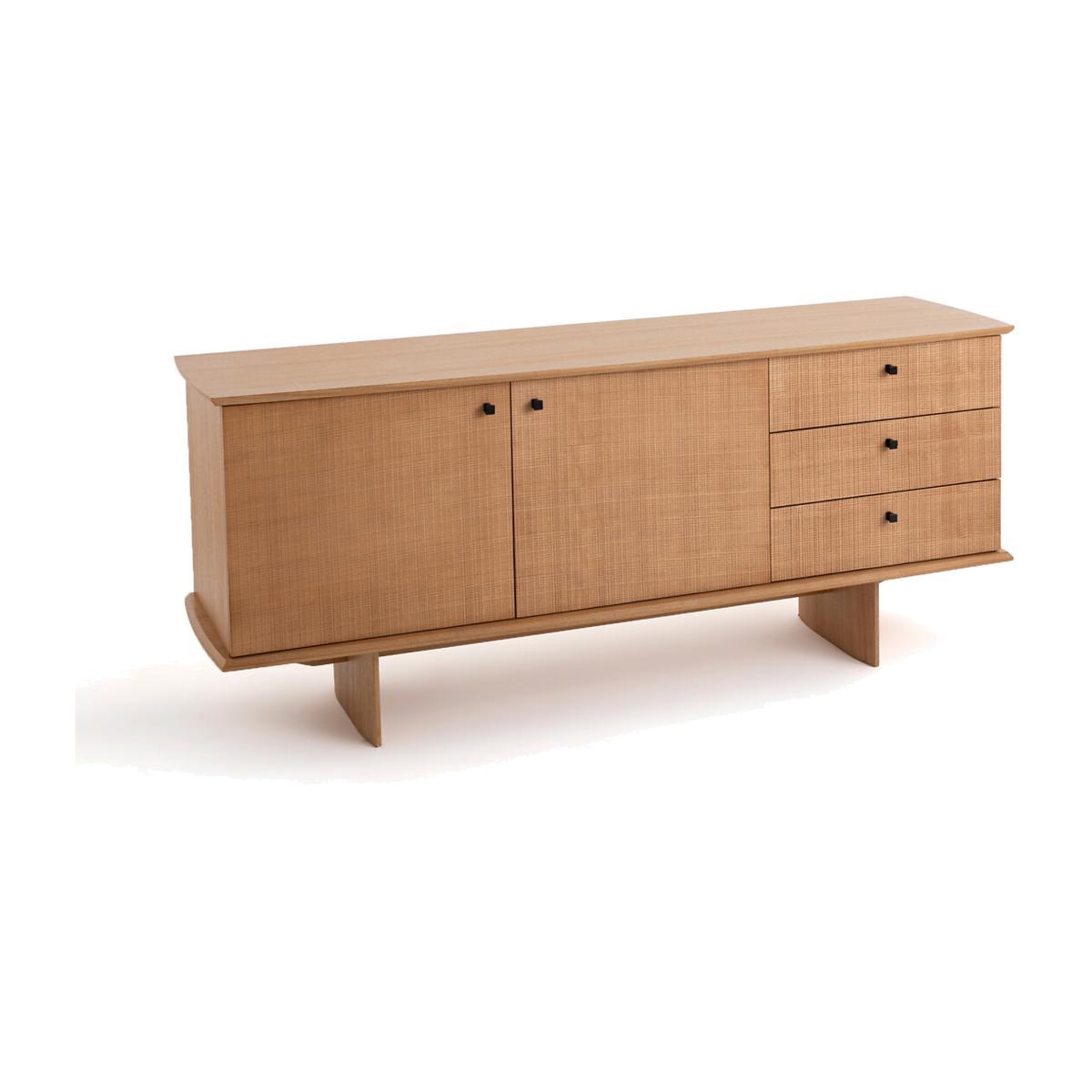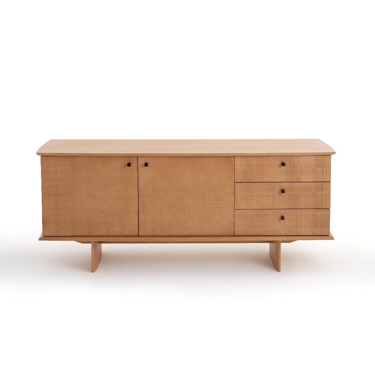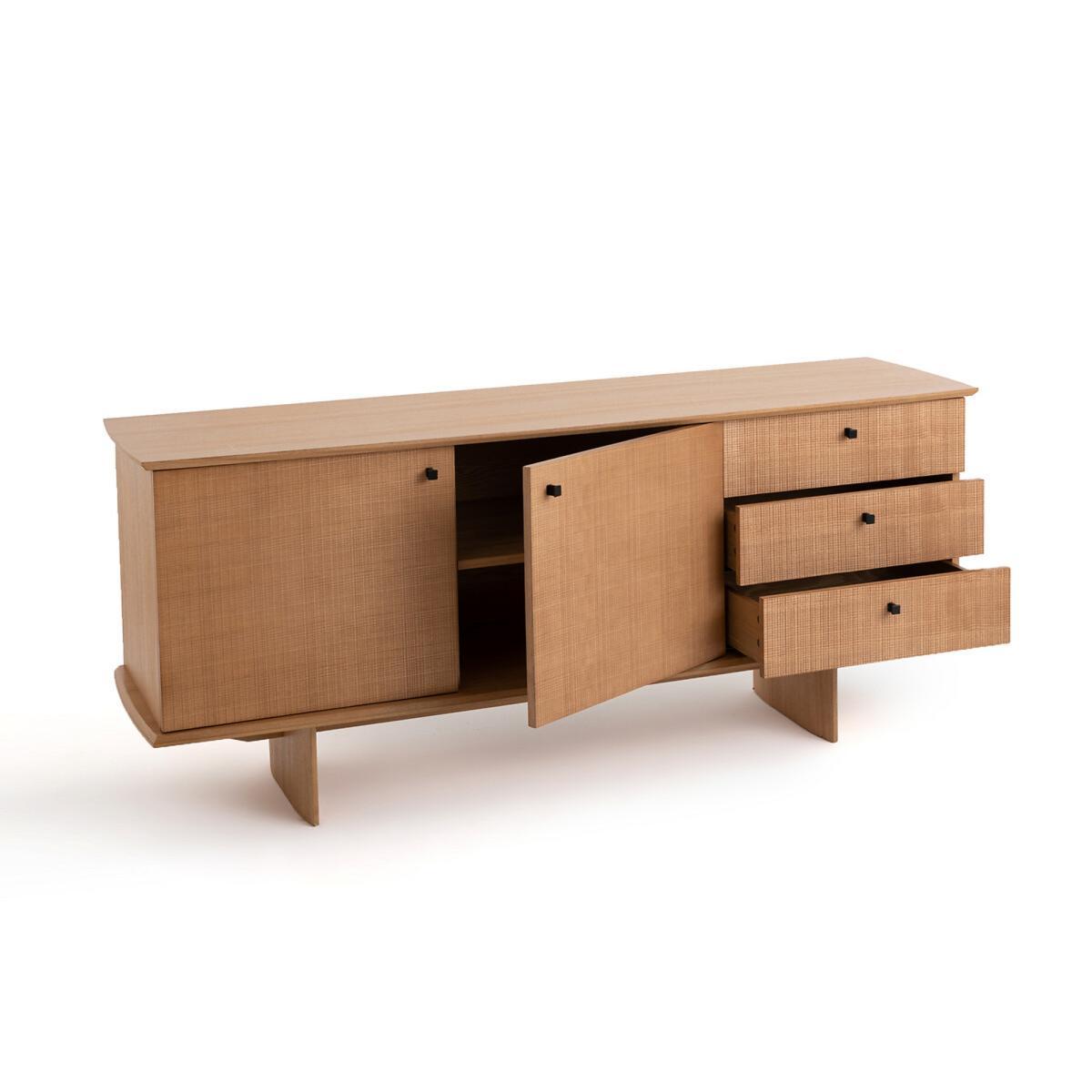 I love this sideboard for its warm, textured oak finish, which adds a natural, inviting feel to any interior. It works particularly well in Scandi-inspired spaces, vintage-inspired rooms, or modern eclectic homes due to its understated yet stylish design. Practical styling tips include accessorising with a mix of decorative bowls, books, or minimal art on top, while keeping storage organised behind the doors and drawers for a clutter-free look. It's versatile enough to serve as a dining sideboard, media console, or even in a hallway-making it both functional and stylish. To enhance its organic appeal, consider pairing it with soft textiles or greenery nearby.