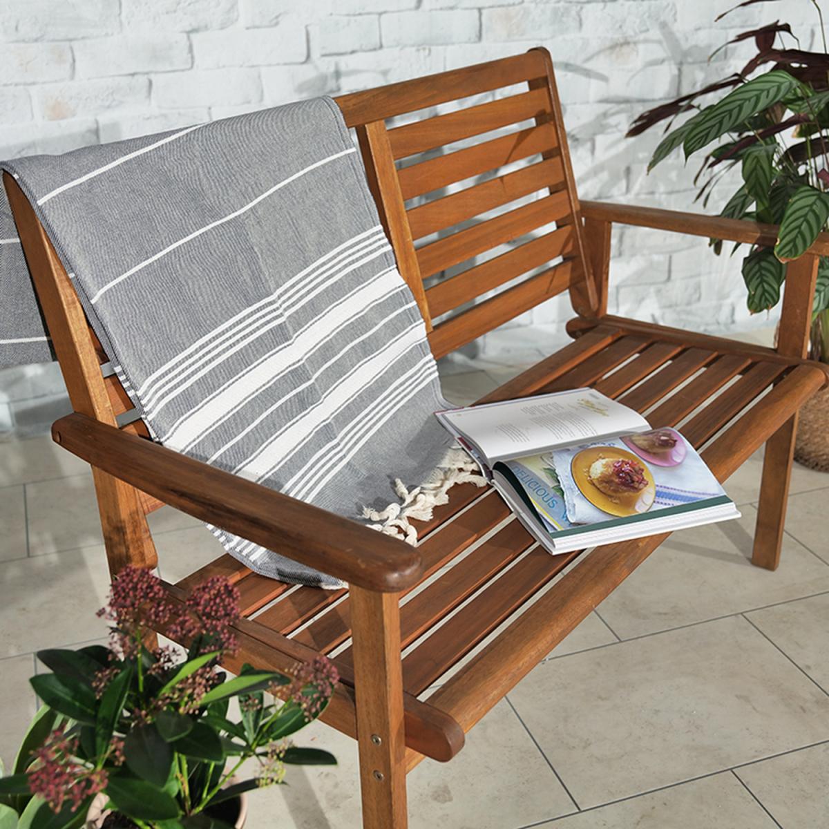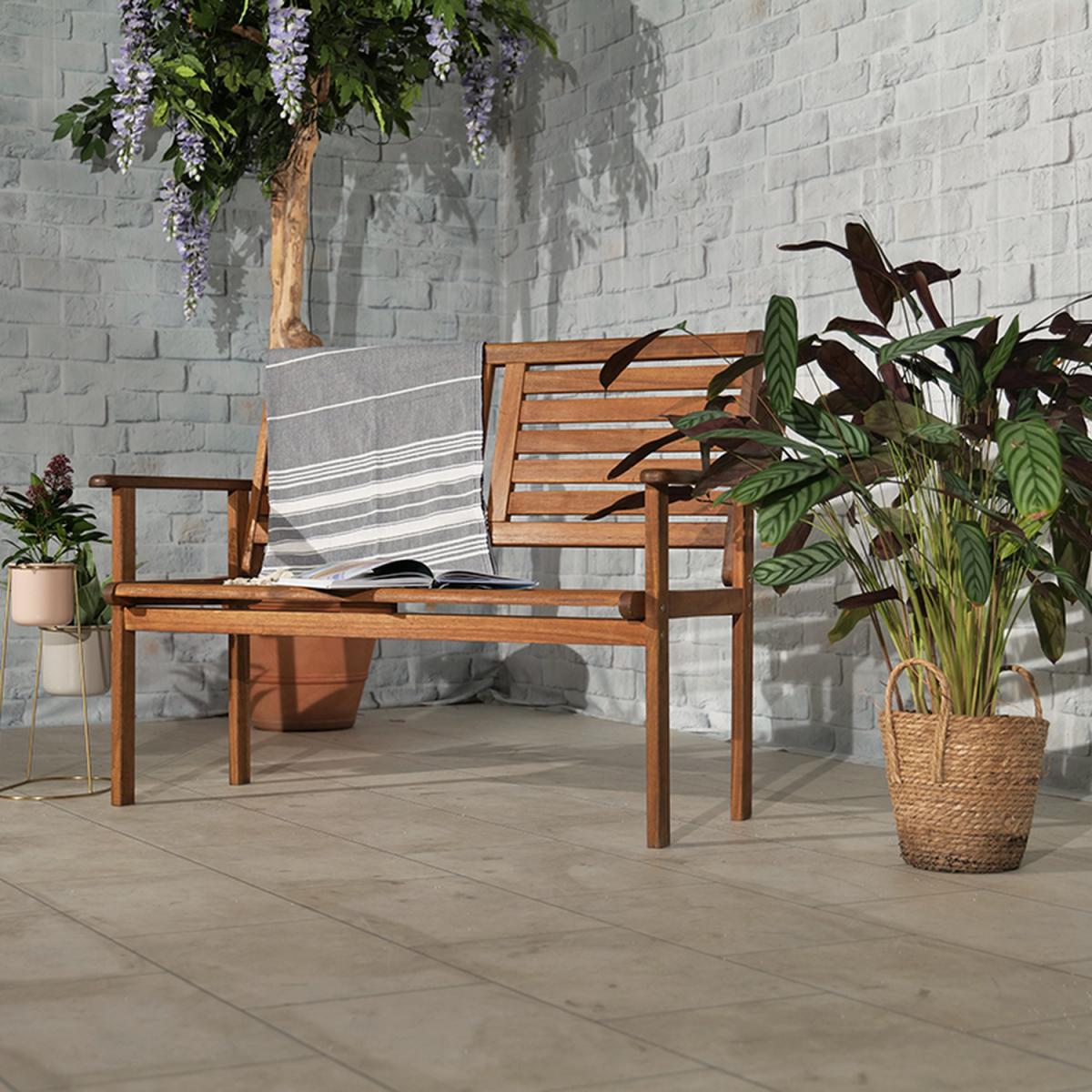 The Napoli 2-seater bench is perfect for sitting out in your garden during the summer months and will complement any outdoor space. Made from acacia hardwood it is durable and long-lasting, for years of enjoyment. Suitable for sitting with your loved one and relaxing on a summer afternoon. This bench will be sure to last as it's made from Plantation Acacia, providing easy maintenance with all year round. We do recommend that you treat your bench with a good quality hardwood sealer oil every 6 months to ensure the longevity of the bench.
