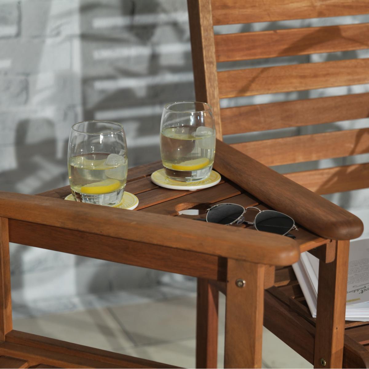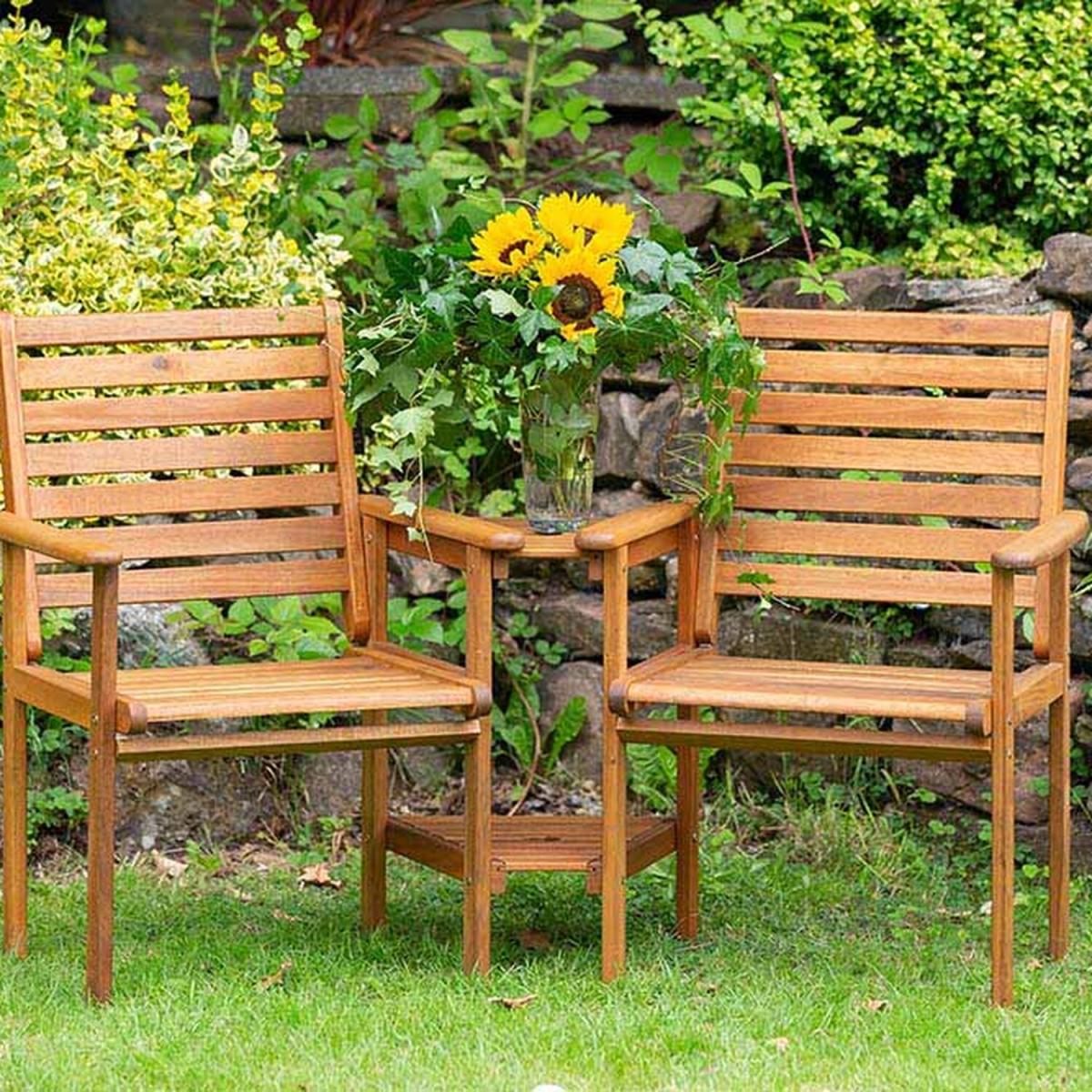He Napoli companion set is perfect for sitting out in your garden during the summer months and will complement any outdoor space. Made from acacia hardwood it is durable and long lasting, for years of enjoyment. The table will accept a standard garden parasol.