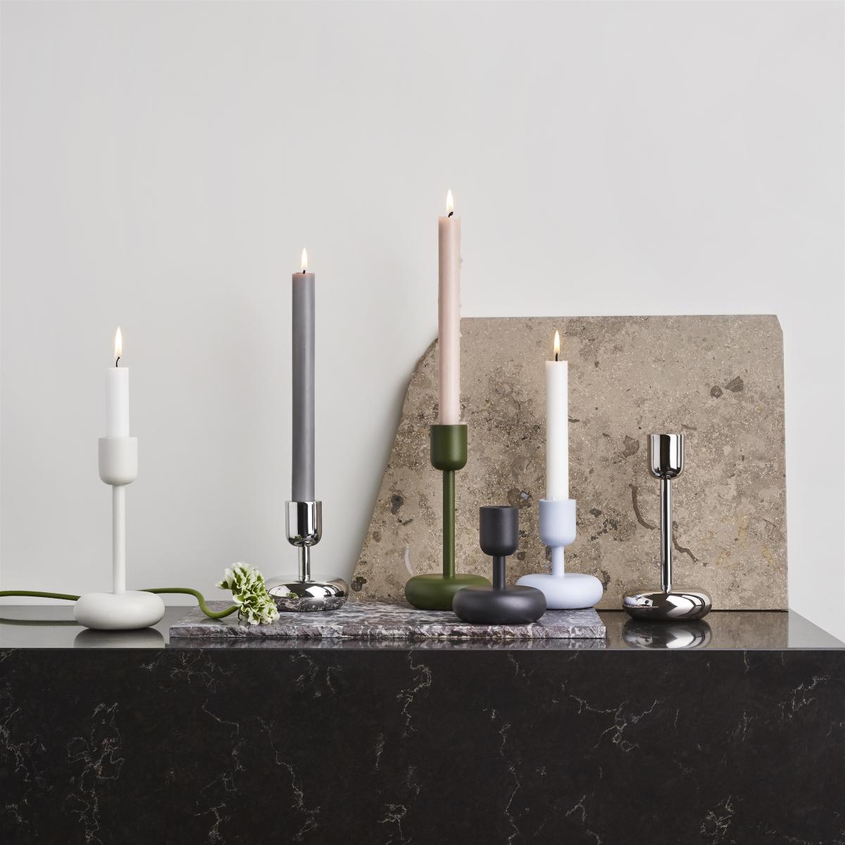 I love this little aqua holder for its sleek, modern silhouette and subtle colour, which adds a pop of calmness to any space. It works well in minimalist interiors, Scandinavian-inspired schemes, or even more eclectic settings when paired with textured textiles or plants. To style, try grouping it with other sizes or colours of candle holders for visual interest or place it on a sideboard, coffee table, or dining table for a cosy, inviting glow in the evenings. Its 107 mm height makes it versatile enough to complement both low and mid-height surfaces, adding a touch of understated elegance without overpowering the decor.
