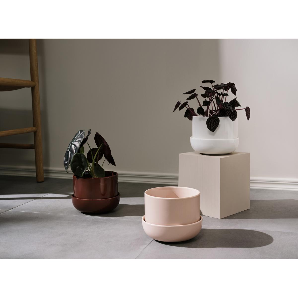 Nappula flower pot with saucer 130x170 mm, from Finnish brand Iittala, is a cylindrical ceramic flower pot standing on a softly shaped saucer, making for an attractive base for both indoor plants and colourful flower arrangements. The inspiration for the collection came to designer Matti Klenell when he was working at the Nuutajärvi glass museum and saw a table with large, rounded feet. Take a look at candle holders and other flower pots in the rest of the Nappula collection, and create a consistent theme in your decor.
