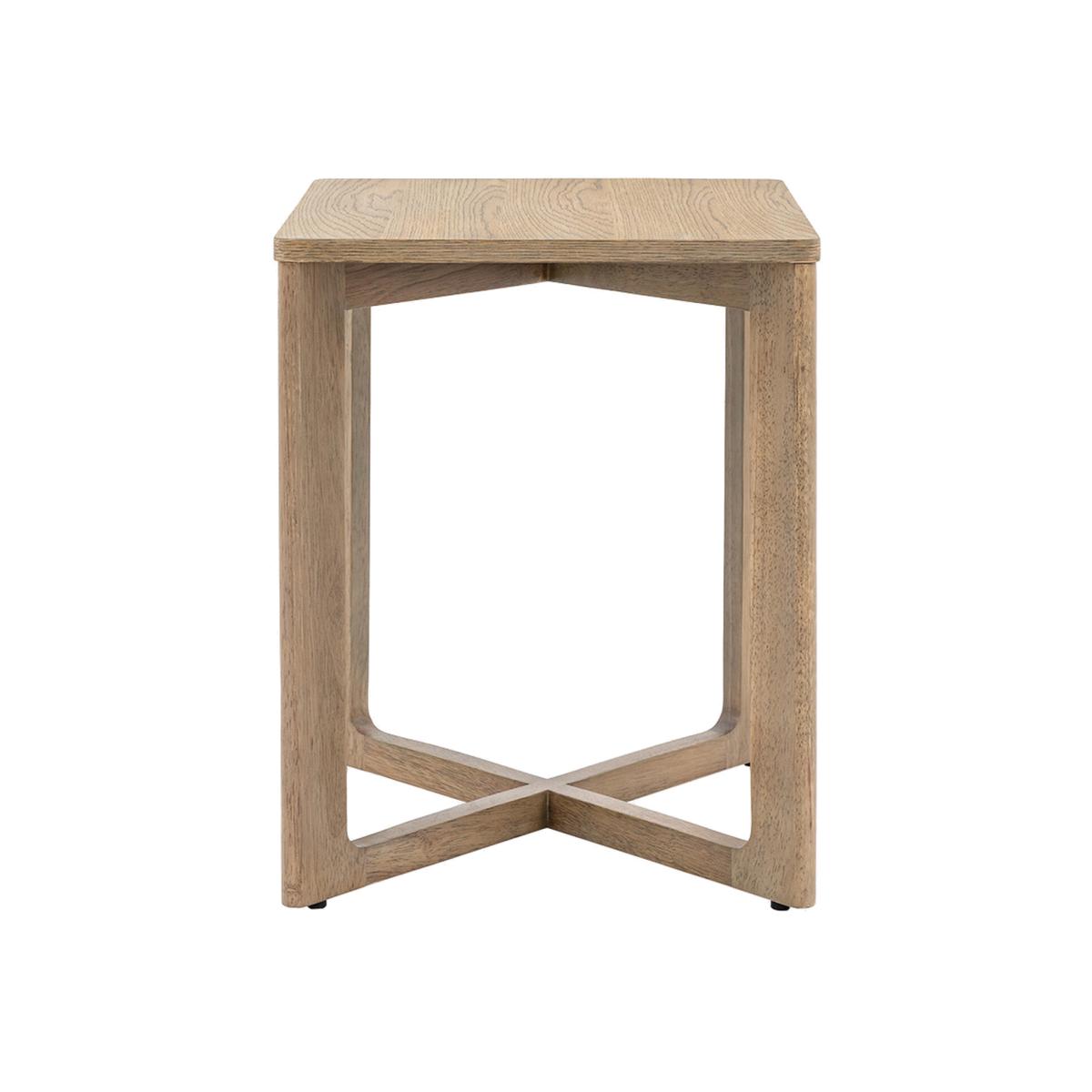 I often reach for the Nara table when I need a versatile side piece - its light oak finish and geometric base slot neatly into Scandi, Japandi or pared-back modern schemes. Its compact footprint makes it ideal beside a sofa or armchair, and I’d style it simply with a slim-profile lamp, a small stack of art books and a sprig of greenery to keep the look clean and uncluttered.