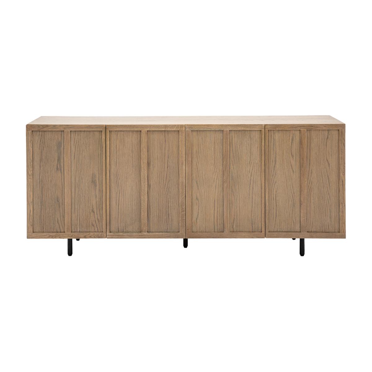 I’m a fan of the Nara unit for its clean, pared-back oak finish and slim black legs, which suit both Scandi and Japandi interiors. Its low profile feels balanced in an open-plan living room or tucked along a hallway wall, and the six doors provide plenty of hidden storage without visual clutter. To style it, keep the top simple: a round mirror or a framed print propped against the wall, a couple of ceramic vases and a small plant. Tidy baskets inside will corral magazines or tech bits, while a runner or small tray can define a display area and protect the surface.