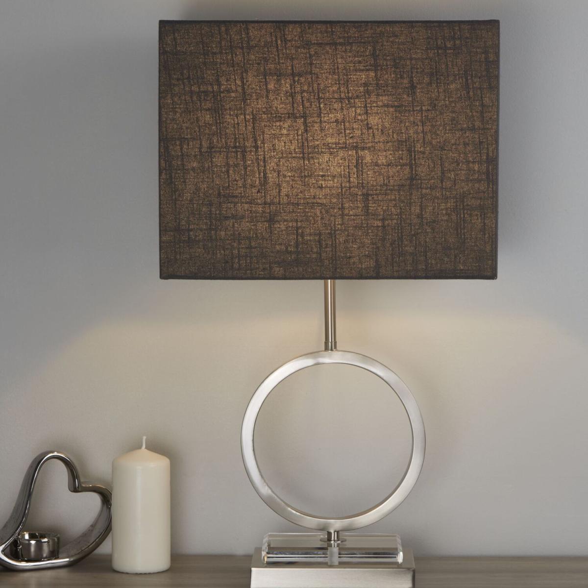 Simple yet incredibly stylish, this table lamp is ideal for both contemporary and more traditional homes. The satin silver base square base is topped with an elegant circle and white linen shade creating a table lamp which would elevate any living area or bedroom.
