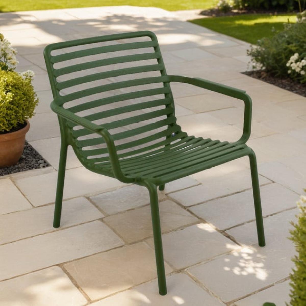 * Low slung lounging chair * Stackable for easy storage * Choice of colours The Nardi Doga Relax Chair brings effortless Italian style to your garden or terrace. With a wide, low seat and gently sloped arms, it’s made for laid-back lounging. The slatted design adds a contemporary touch, while the durable glass-fibre resin ensures strength without the weight. UV inhibitors help maintain its colour, whether you choose olive green or anthracite. Stackable and easy to store, it’s as practical as it is stylish.