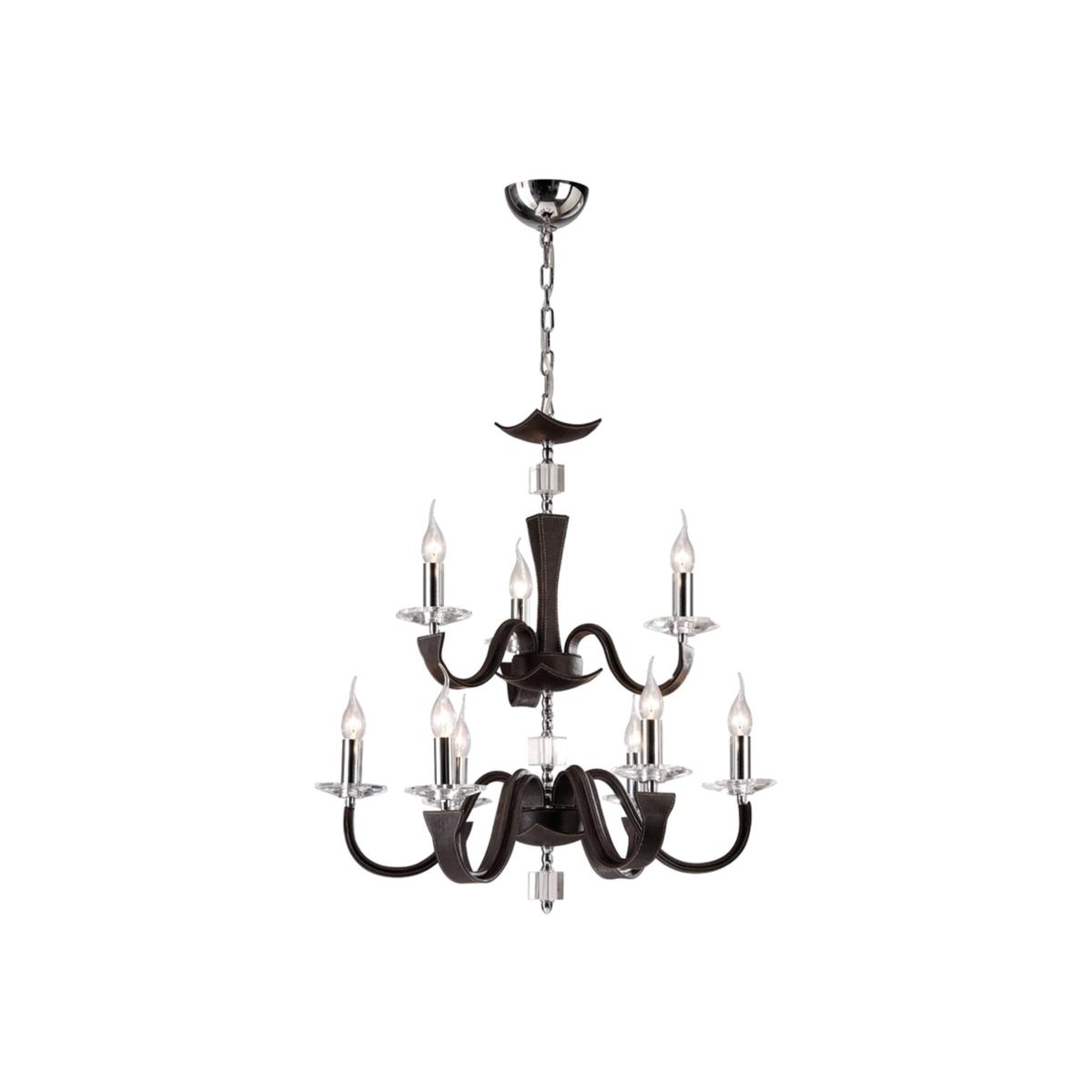 Nardini Ceiling Pendant Chandelier 2 Tier Chrome Brown Faux Leather, Crystal - Polished Chrome
