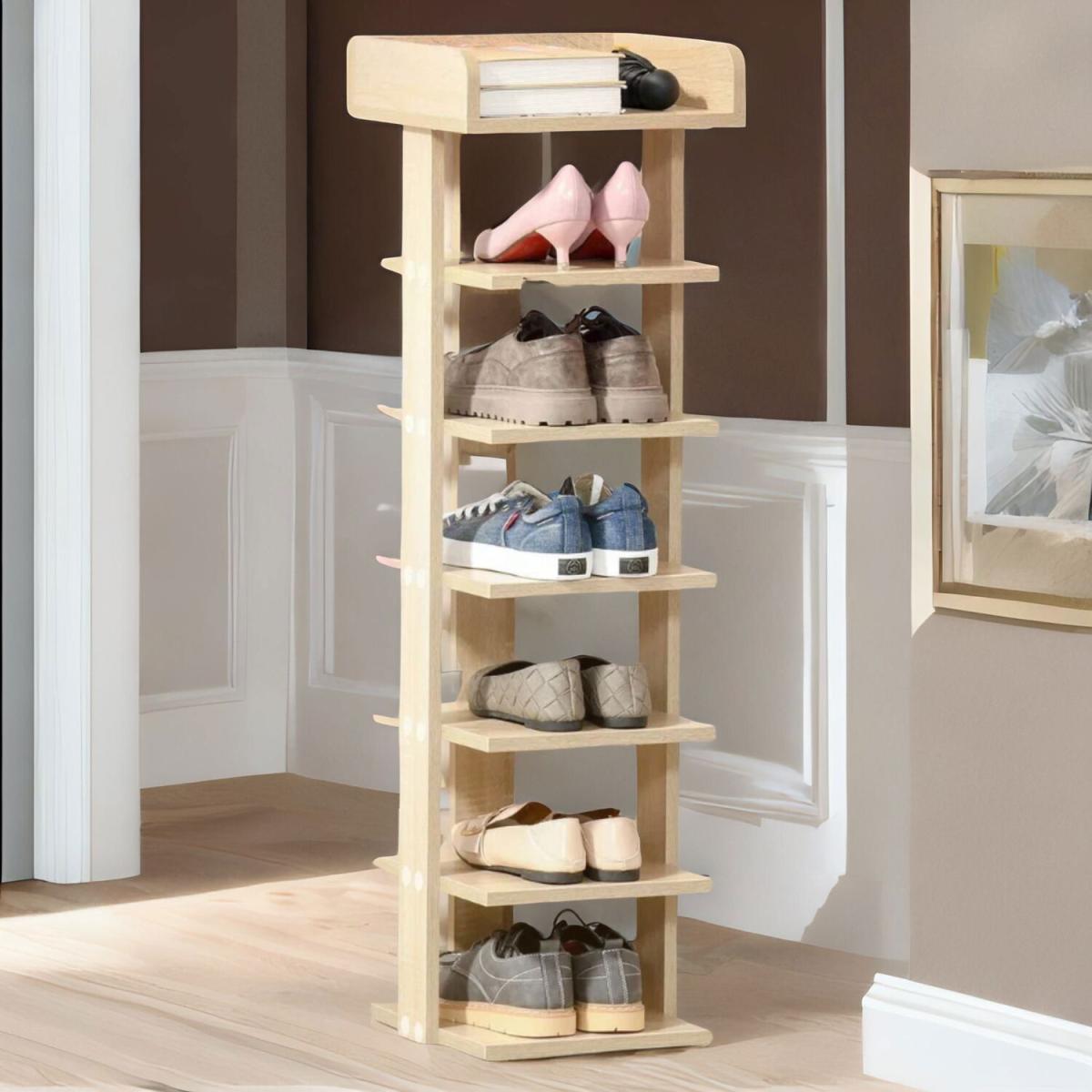 This shoe rack features six layers, accommodating up to six pairs of standard-sized shoes. The top surface is ideal for holding decorations, books, and keys, providing versatile storage options. Made from quality particleboard, this shoe cabinet ensures a durable and reliable unit for everyday use. The anti-toppling design at the back adds an extra layer of safety and security. It seamlessly integrates into any room's decor, enhancing the overall aesthetic. Tall and slim, this storage shelf occupies minimal space, making it perfect for limited areas. It can serve as a shoe rack in the entrance or a storage rack in the living room, bedroom, study, and more. This shoe rack has a total weight capacity of 15kg, with each single layer supporting up to 1.5kg. Easy to assemble with included instructions.