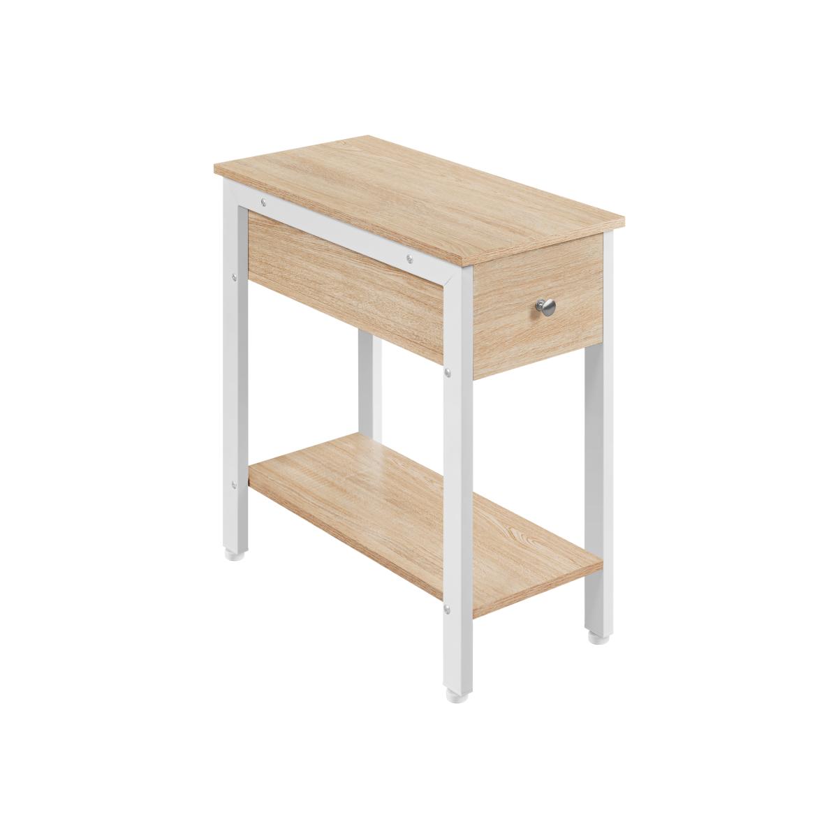 Narrow Bedside Table with Drawer and Open Shelf - Light Oak