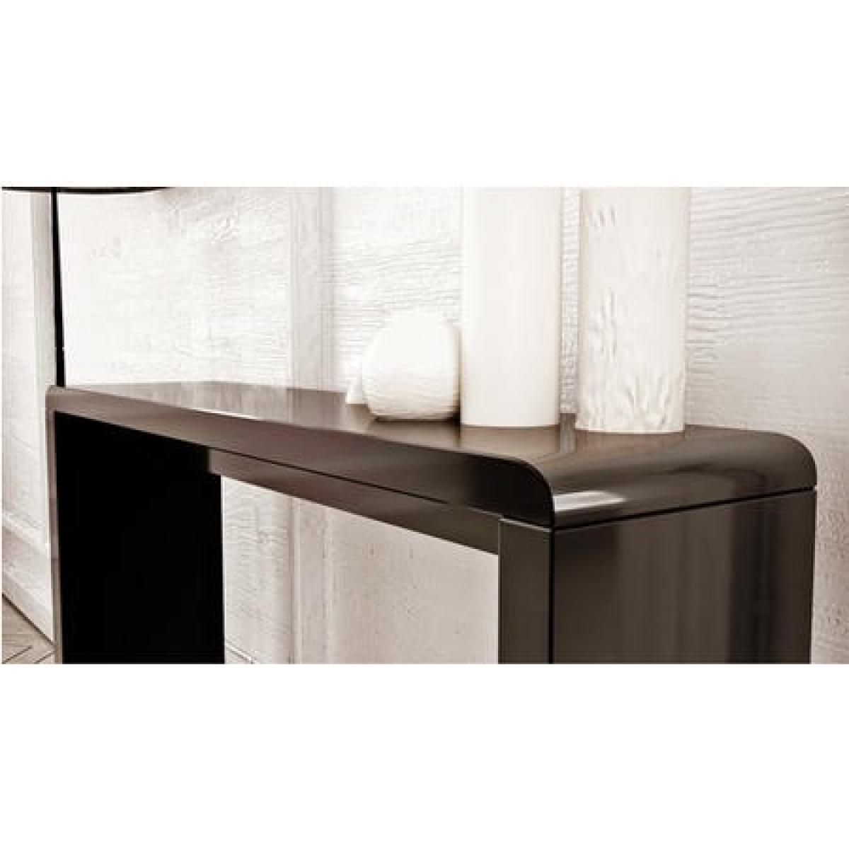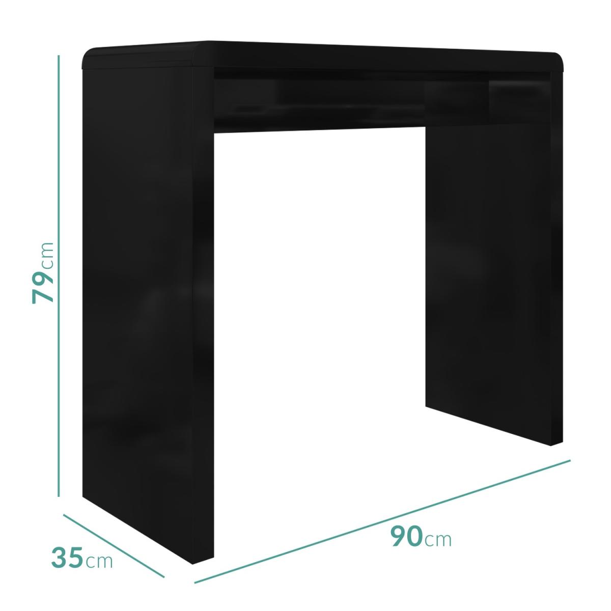 Features we love Clean design perfect for updating your space with a modern touch. The narrow design makes it ideal for tighter spaces in the home including the hallway Sleek high gloss finish gives it a natural shine and it's super easy to wipe clean. It has a beautifully seamless design with curved corners. In all black it has an elegant appearance All about me. Perfectly proportioned in every way this narrow console table is great for tighter spaces in the home where you need a little surface space thanks to its slim 90cm width and 35cm depth. A great finishing touch to your room to bring a bit of modern styling. This neat console table is highly versatile you can put it to use in pretty much every room in the home. Position it in the hallway for practicality in the dining room or living room for display space or even in your bedroom as a dressing table. It's ultra-modern with its super sleek high gloss finish giving the table its own natural shine. All in black it has an elegant look and curved corners give it a seamless aesthetic. It's been made from a tough wood combination and finished to a high standard with its high gloss coating which also makes it super easy to wipe clean. Need to know. Dimensions. H79 x W90 x D35 cm Material. Wood Finish. Black high gloss. Assembly required More info Clean contemporary design ideal for the modern home Sleek high gloss finish gives a natural shine and it's super easy to wipe clean. An all black finish giving it a clean and elegant style Narrow design makes it great for tighter spaces in the home Rounded corners maintain a smooth and seamless appearance. Apply it to any room in the home hallway living room or even use it as a dresser in the bedroom. Self-assembly required.