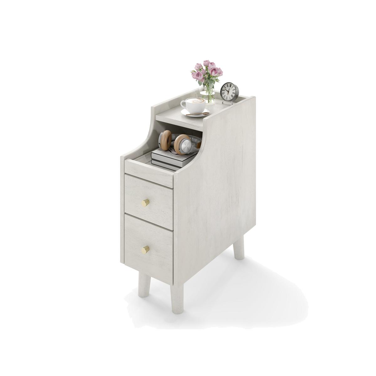 Narrow Nightstand End Table - White