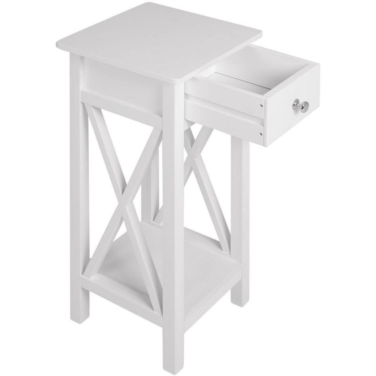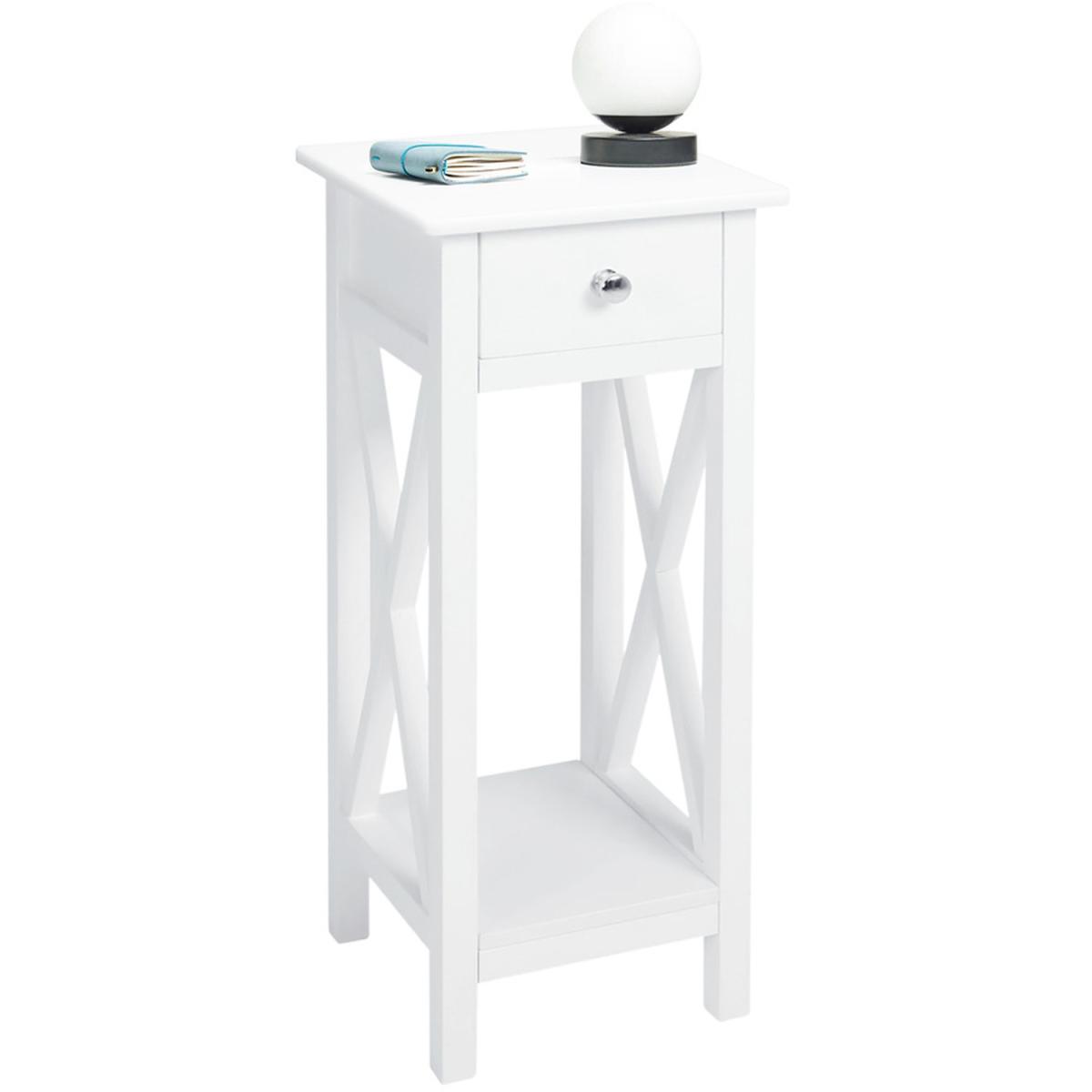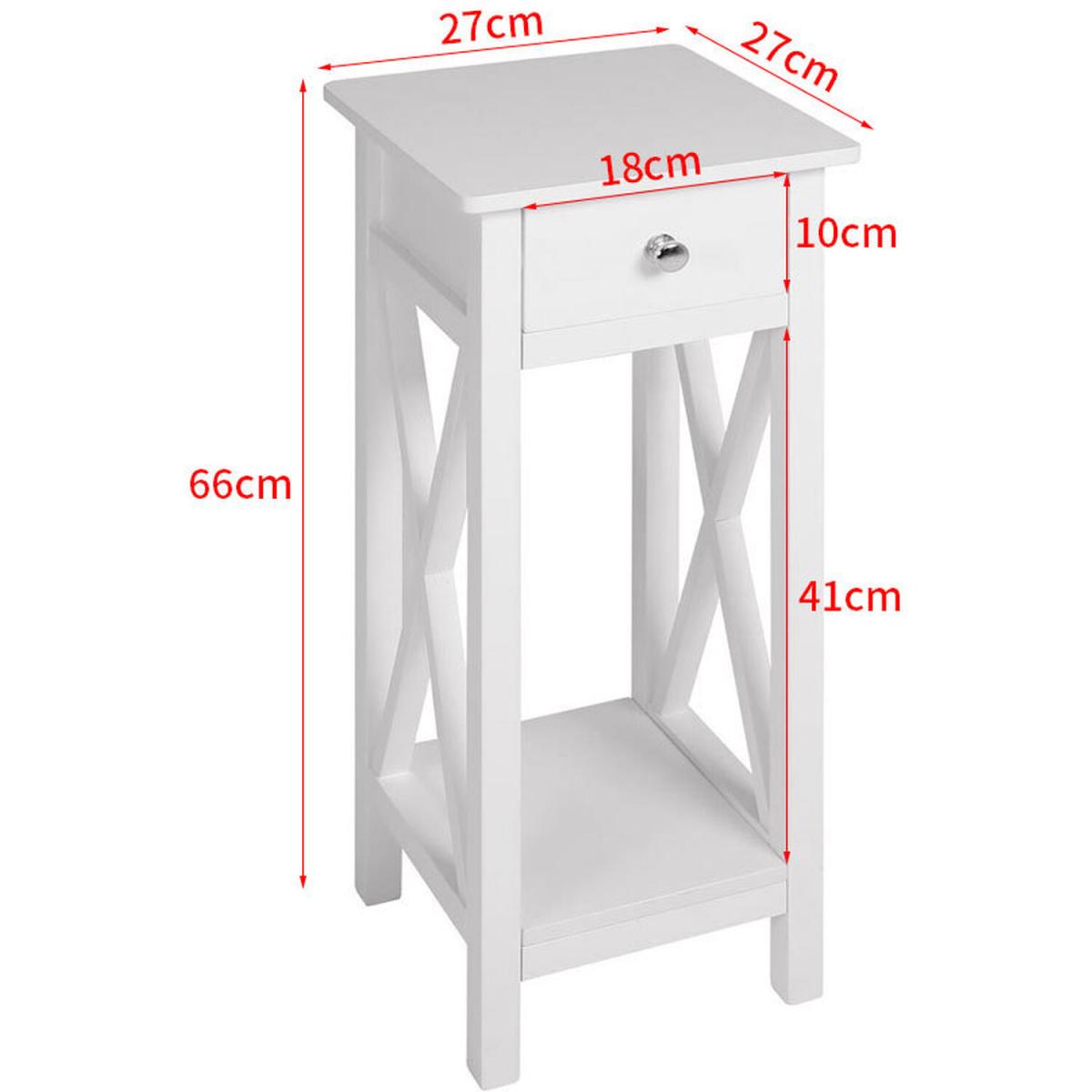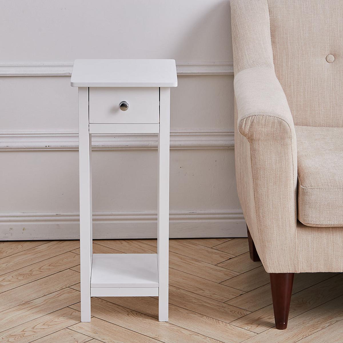 Our side table with a drawer features compact size shape, especially for a long narrow space, like by the beside sofas, chairs or under windowsills, with taking up less space. Features two tiers, an open bottom shelf and a top drawer, giving you lots of storage space to keep the area neat and tidy. The frame is given extra strength with the side cross bars, helping to keep the shape unified. With anti-slip footpads, prevent scratches and reduce noise when need to be moved. Smooth matte finish, easy to clean, resistant to water and light marks. Comes with a full range of accessories and instructions, which is simple to assemble. Add this side table, a beautiful addition to your home, creat a elegance romantic atmosphere.