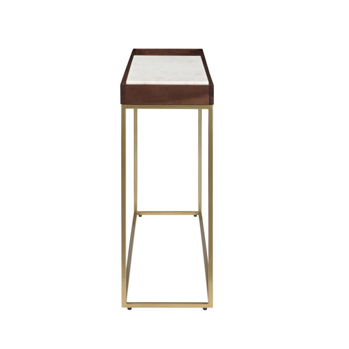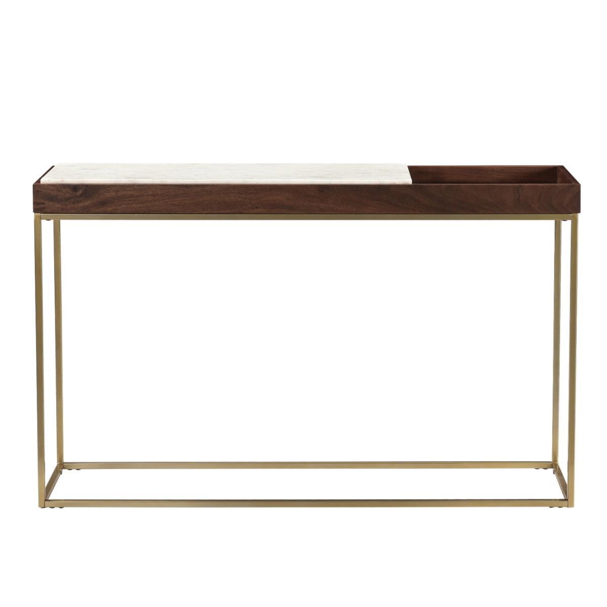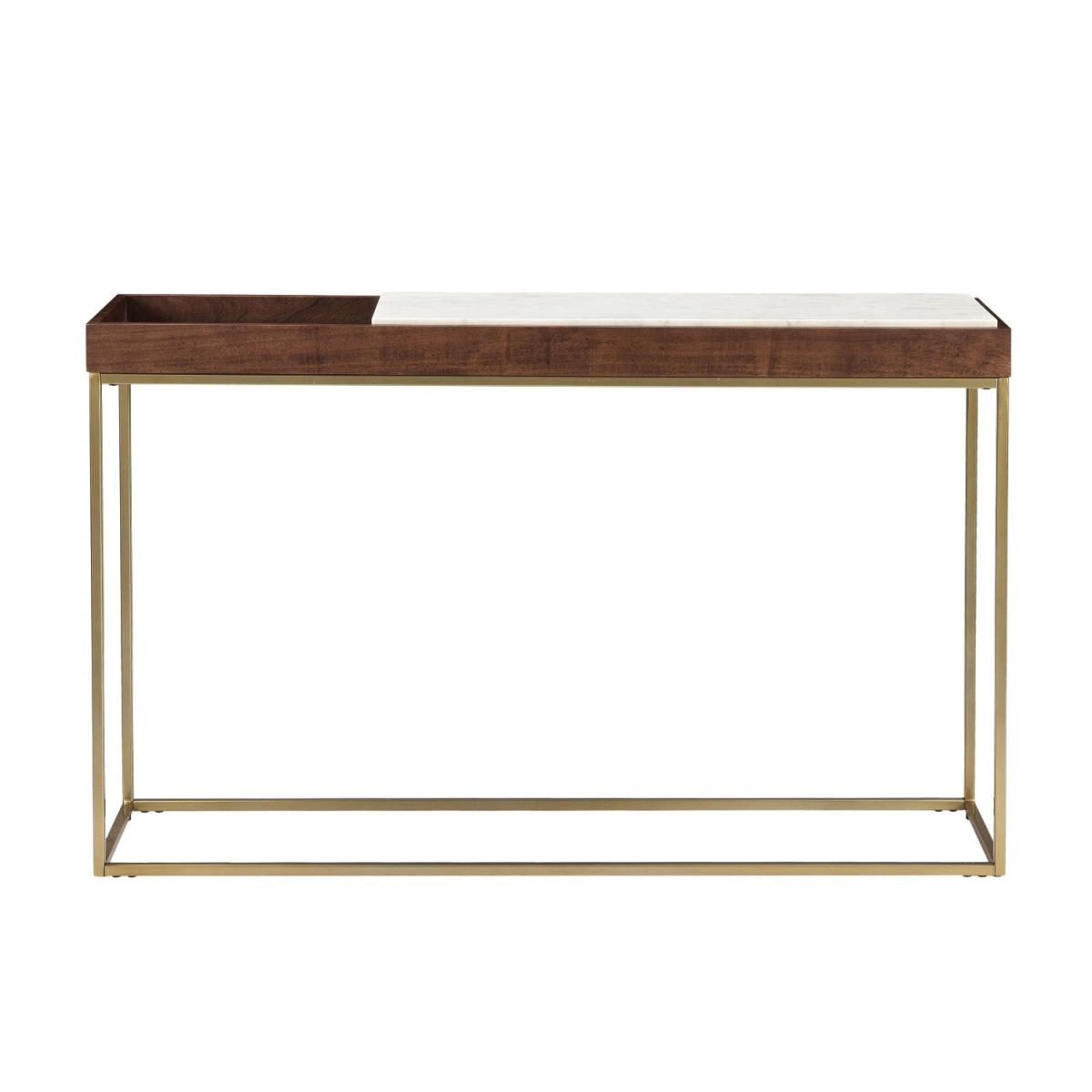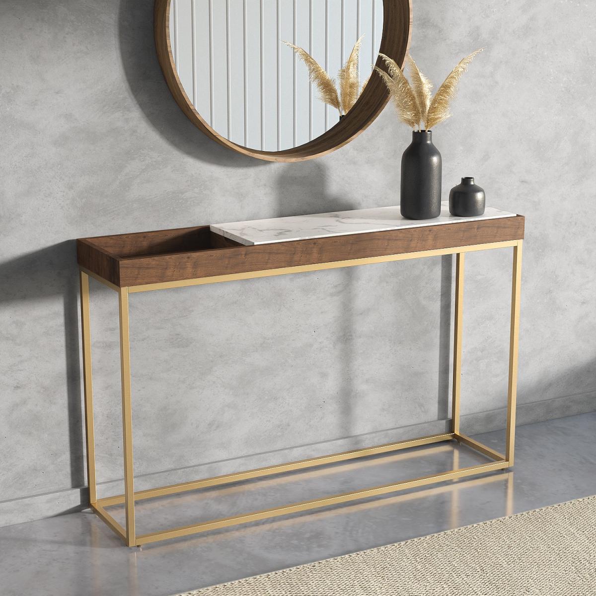 This handy console table is the perfect additional to any hallway if you're wanting to add in some furniture but don't have a lot of space. Made from solid wood and real marble, this unique piece will look great in any interior setting. The inlaid tray feature helps you to keep things tidy and also offers the perfect place to display home accessories. Matching items such as a coffee table, side table and sideboard also available.