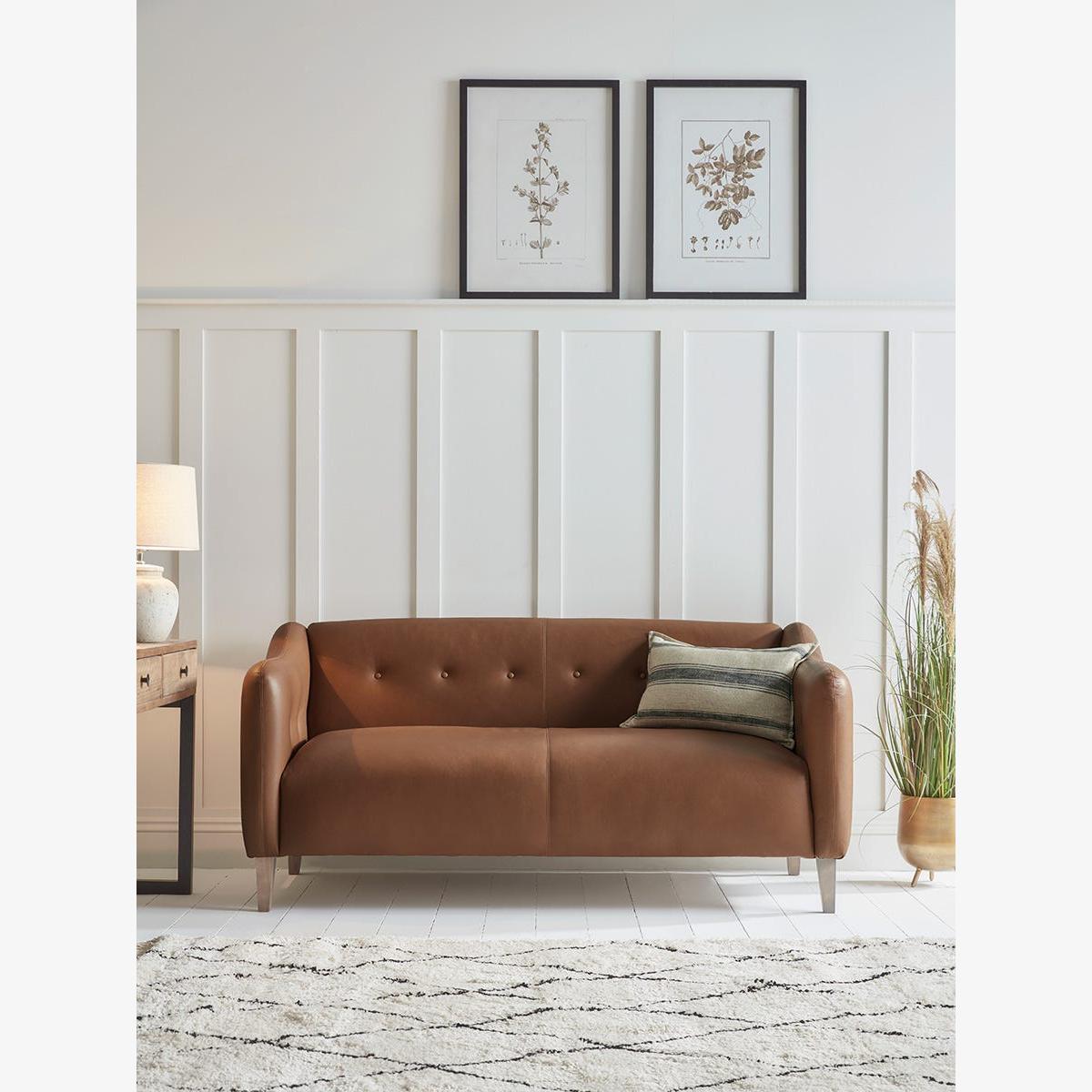 Taking the buttons from a classic Chesterfield style and repositioning them strategically on a modern silhouette, our new Narvik made to order range marries the very best of traditional and contemporary influences. Fully fitted upholstery offers a sleek outline, enhanced by a gentle sweep to the arms and a deep sprung seat offering the ultimate in comfort. A single row of buttons runs across the back of each piece, while a panel of six buttons accents the sides. The Narvik range includes two seater and three seater sofas, an armchair and an ottoman. Pictured here in leather, our Narvik collection can be upholstered in a choice of 33 distinctive shades and five fabrics to suit your style. Read our Upholstery FAQs View our full Upholstery Terms and Conditions