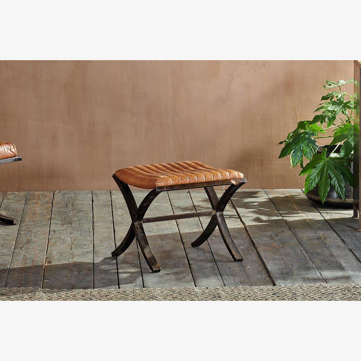 I’m a fan of the ribbed leather stool for its warm, cognac-toned hide and slim, X-frame base - it brings texture without bulk. It works equally well in industrial or rustic schemes as it does in pared-back Scandi or eclectic spaces. Try it as extra seating by your coffee table, as a low bedside perch or even topped with a small tray for drinks, then balance it with soft textiles (think a neutral throw or a boucle cushion) and a couple of black-metal accents to echo the frame.