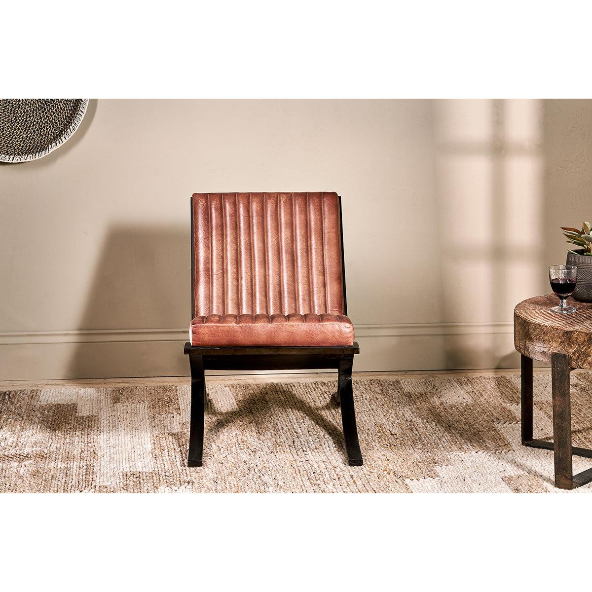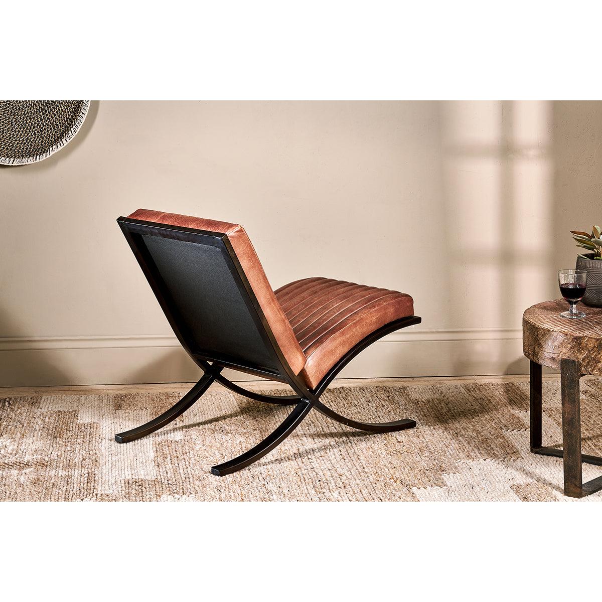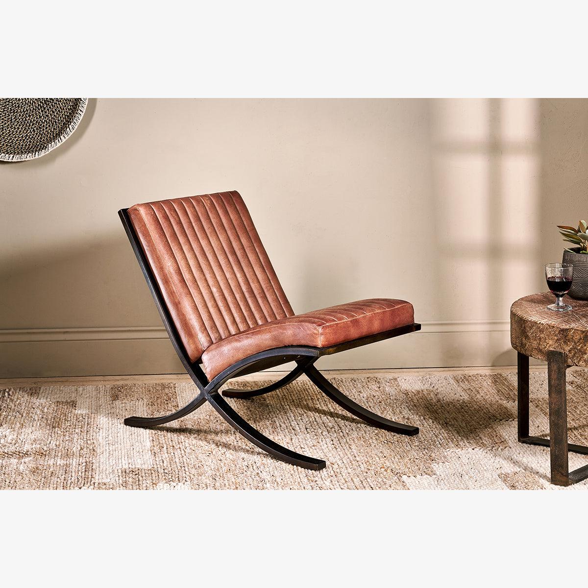 I’m a fan of this ribbed leather lounger for its clean lines and durable, patinated leather - it adds instant character without fuss. The black metal frame and warm tan hide sit comfortably in industrial lofts, Scandi-minimalist schemes or even a more rustic, farmhouse-style living area. For styling, pair it with a chunky knit throw or a muted wool cushion to soften the look, then anchor it with a simple side table and a task lamp to create a reading nook. Its low profile means you can float it in an open-plan space or tuck it beside a bookshelf to fill an otherwise awkward corner.