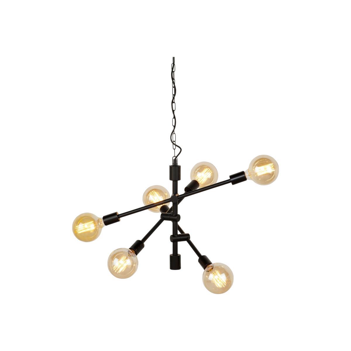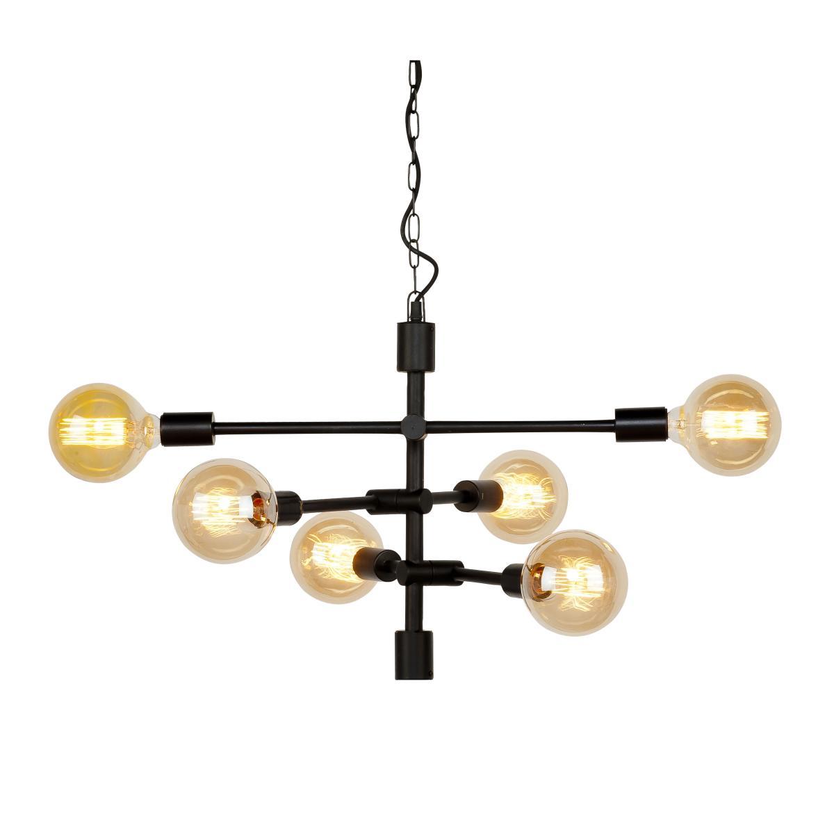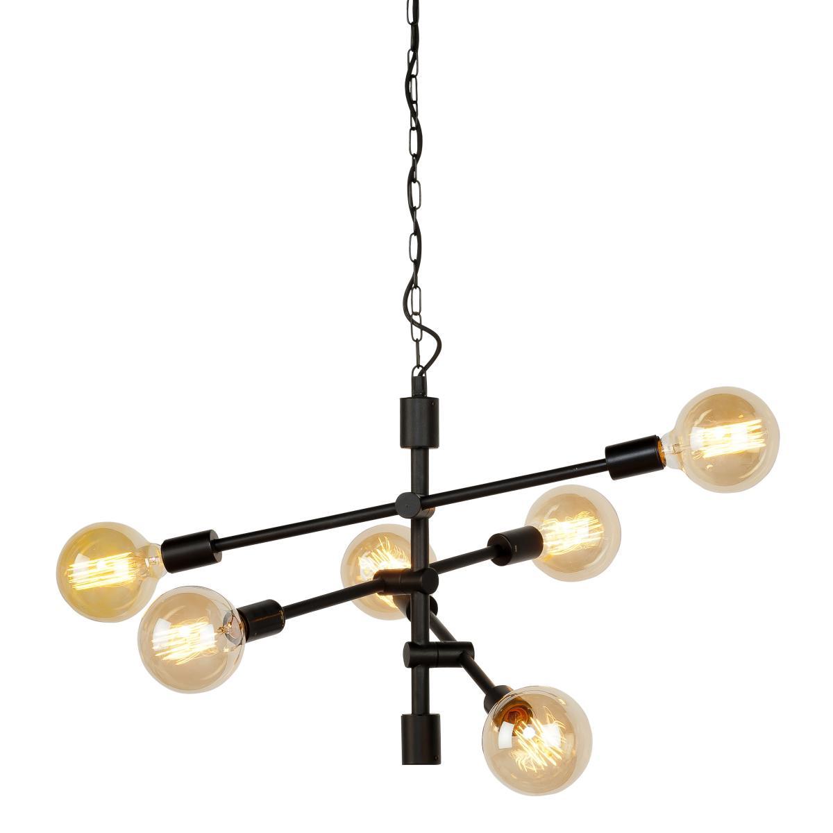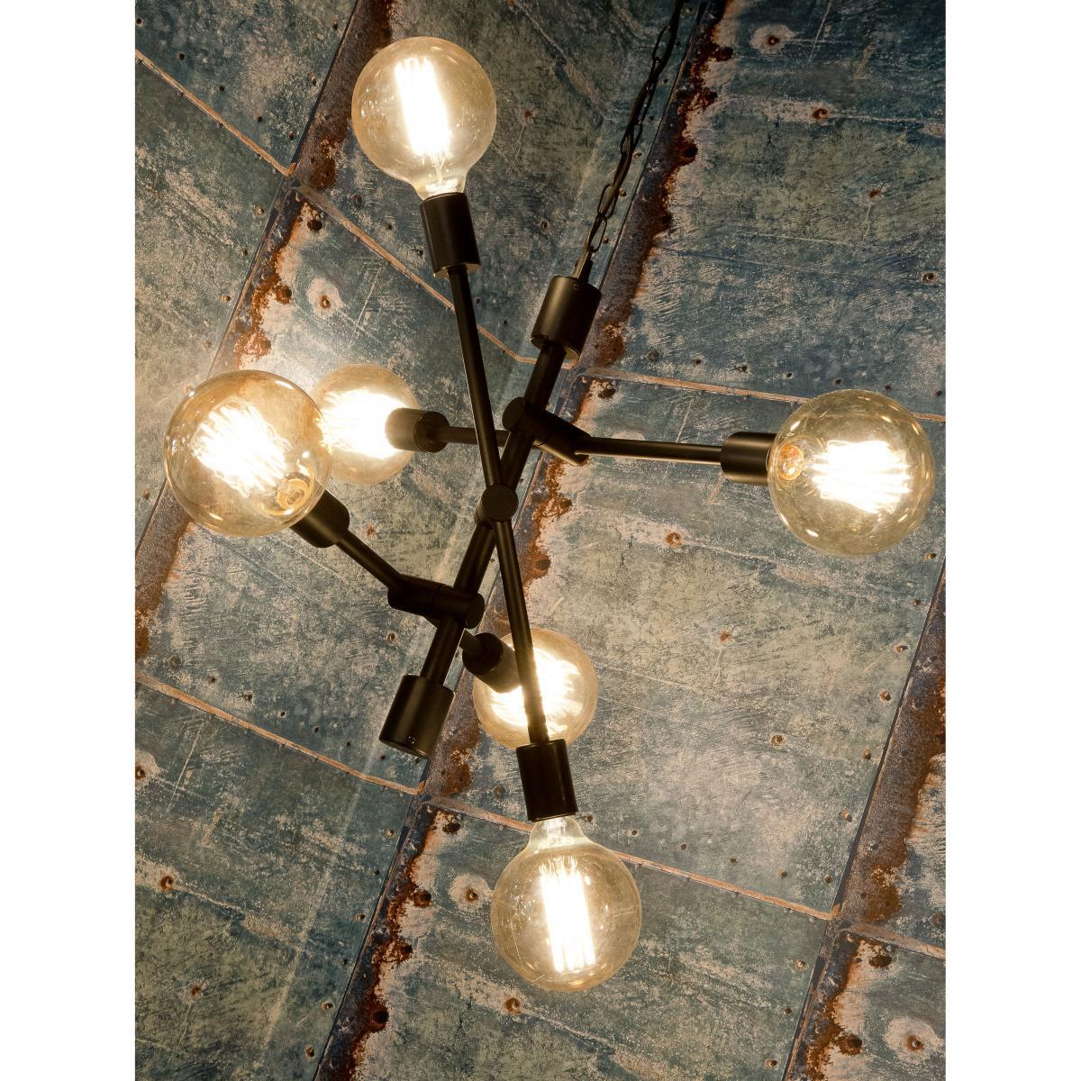 This pendant is a new raw and industrial take on the traditional chandelier. Inspired by the world of engineering, an articulated black metal structure evokes industrial pipes, nuts and other mechanical parts. Its architectural tubular construction does exactly what is supposed to and with scientific rigour. It is a modular pendant you can change as you see fit, by rotating the tubes in the direction of your choice. The 6 bulbs are not provided. You can use any decorative bulbs of your choice (E27 cap). Classic bulbs with a filament, oversized globes or even coloured bulbs. Get creative!.