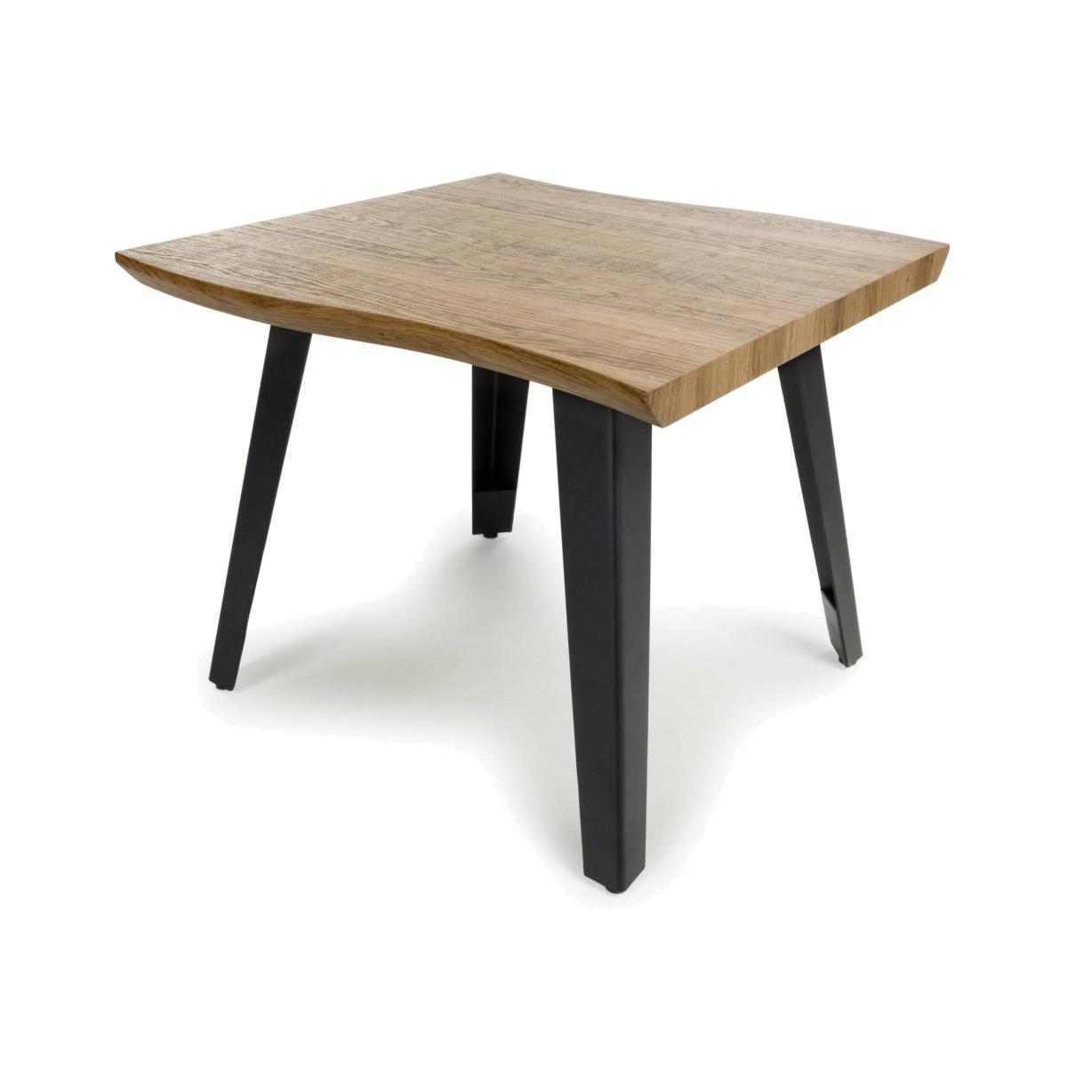 This curved edge end table combines a classic blend of industrial and Scandinavian styles. An appealing bevelled wavy cutout edge runs along both sides of its stain resistant wood effect printed 32mm top. The table is sturdily supported by black powder coated iron legs, complete with adjustable feet. A versatile small table, equally at home in living or bedroom settings. Leg assembly required. Sold individually.