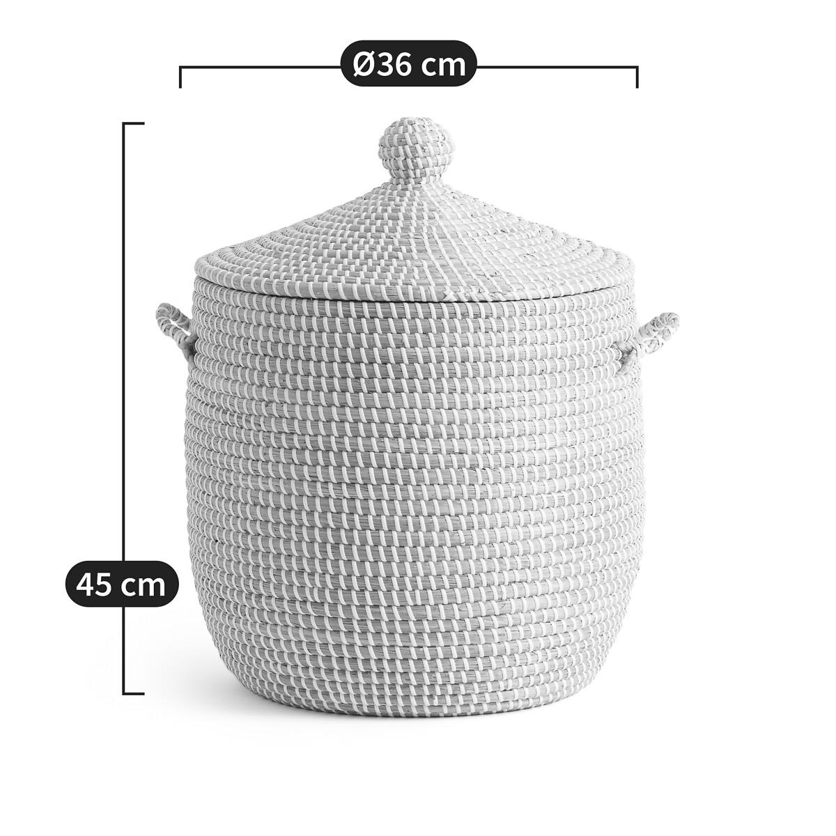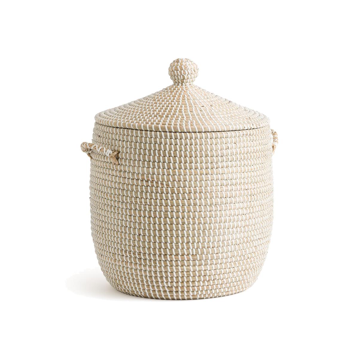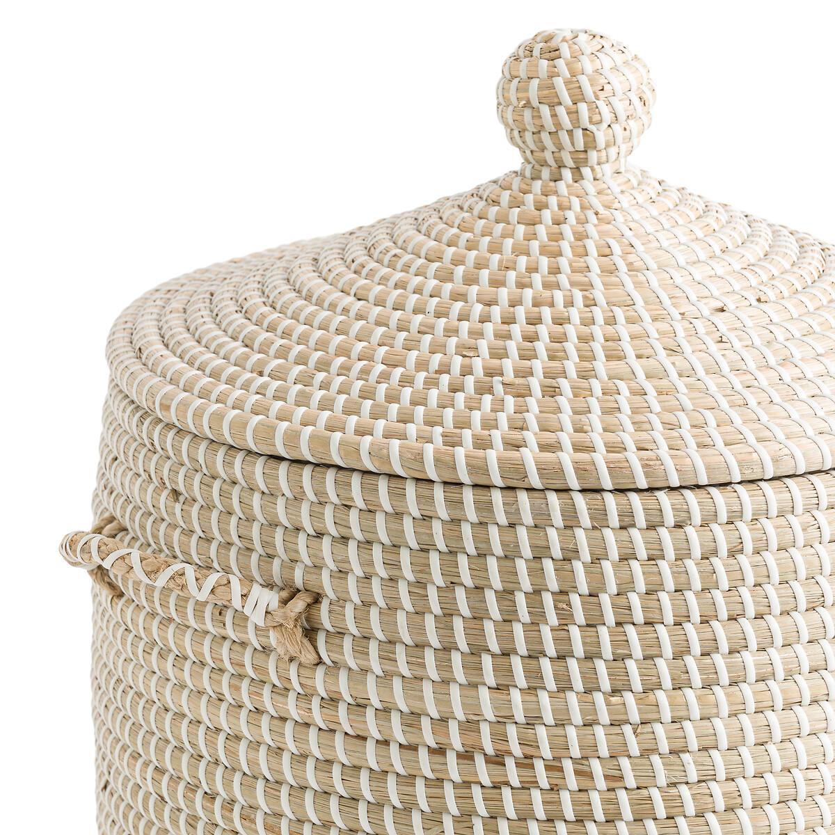 Looking for something that's beautiful as well as useful? This is Natala. A basket with a lid, both practical and aesthetic. This basket will find its place in a living room to store magazines, in a bedroom for toys or in a bathroom for towels or laundry.