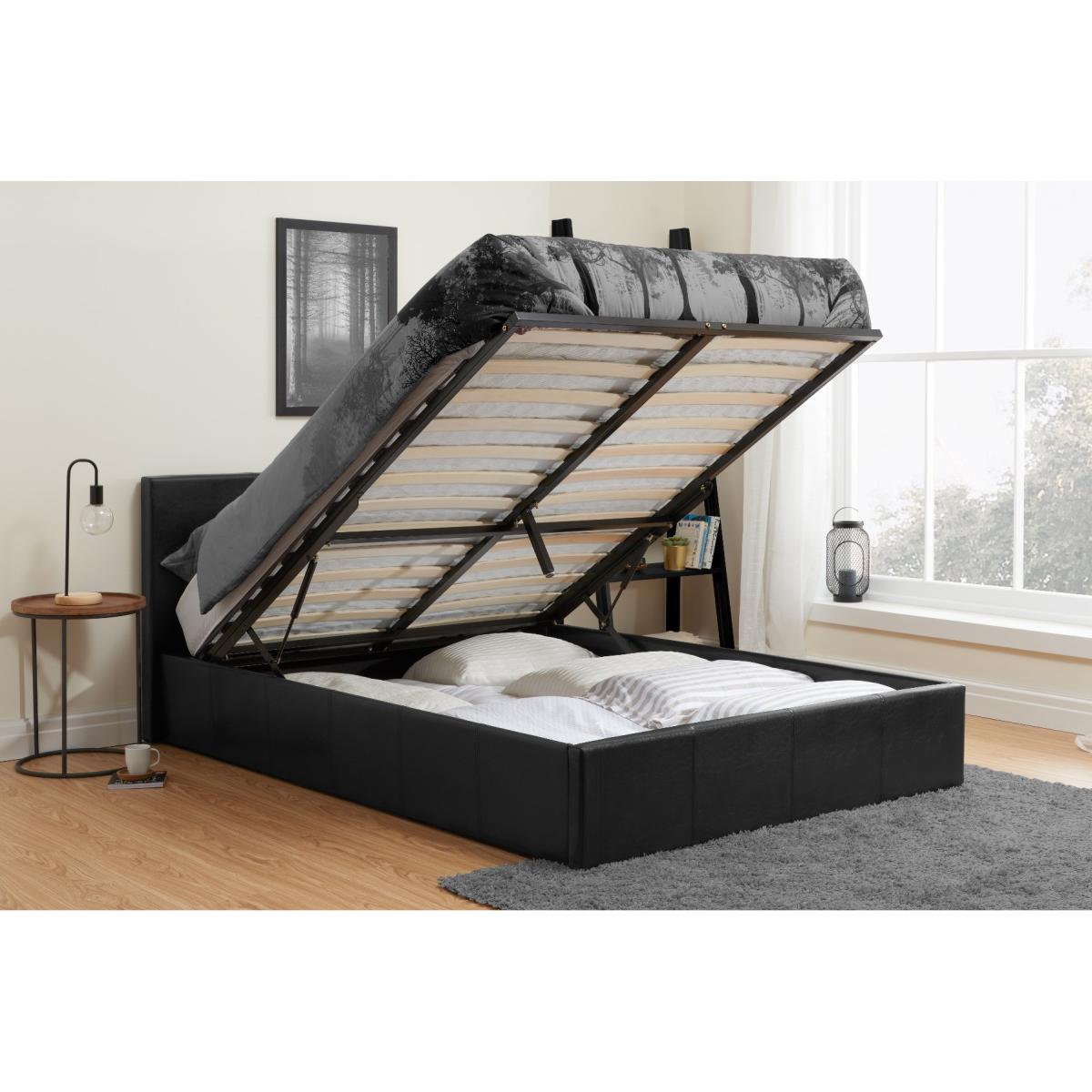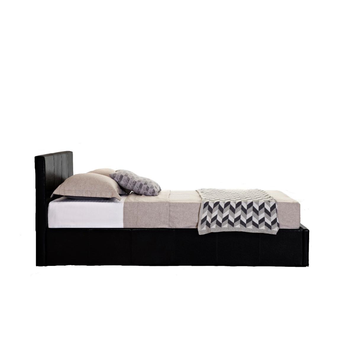If you’re looking for statement style and practicality then the Natalia ottoman bed in black is an exceptional choice. The Natalia ottoman features a generous storage space beneath a sprung slatted mattress base and is upholstered in on-trend faux leather. This bed adds both style and versatility.205cm in length and upholstered in a stunning black faux leather Strong gas-lifts allow access to the storage space Modern design and beautiful upholstery Easy to assemble