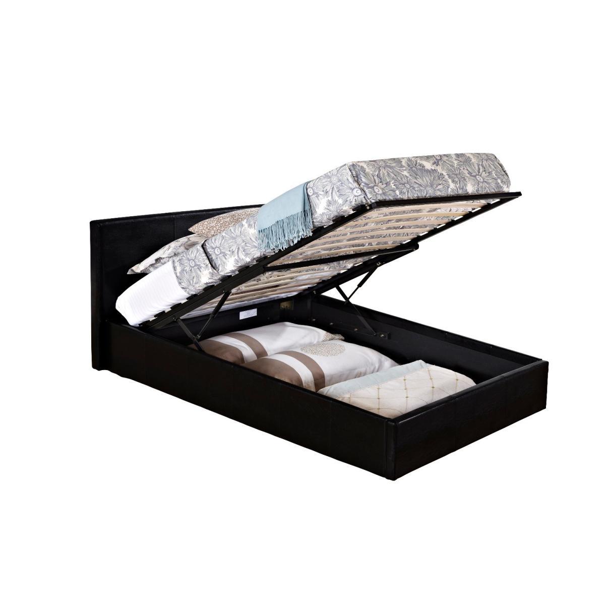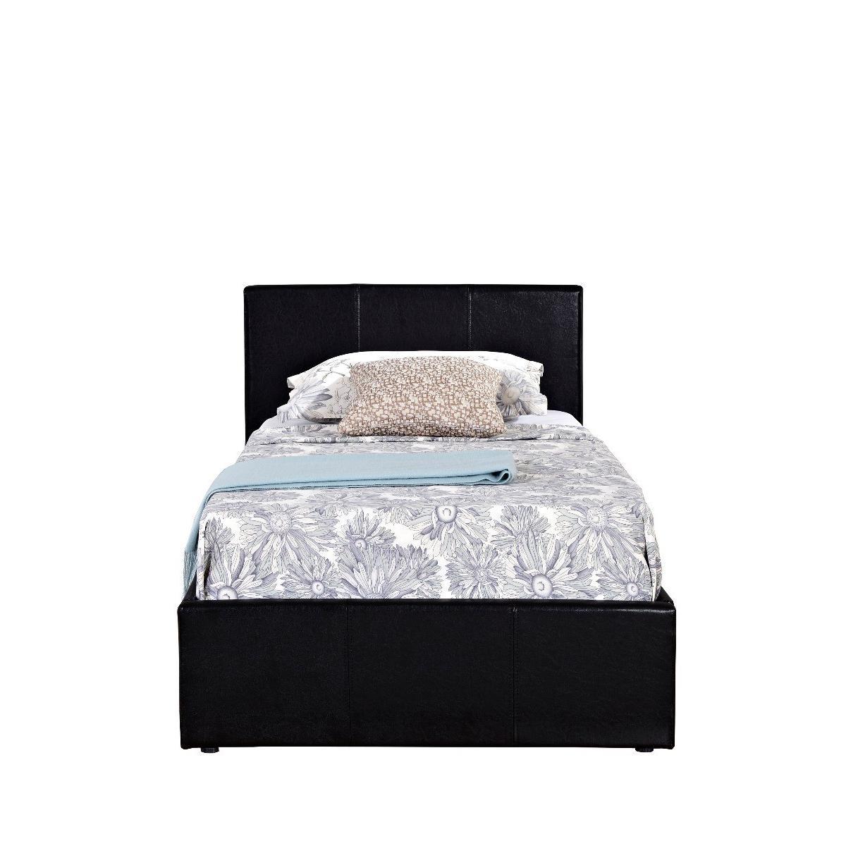 If you’re looking for statement, style and practicality then the Natalia ottoman bed in black is an exceptional choice. The Natalia ottoman features a generous storage space beneath a sprung slatted mattress base and is upholstered in on-trend faux leather. This bed adds both style and versatility.205 cm in length and upholstered in a stunning black faux leather Strong gas-lifts allow access to the storage space Modern design and beautiful upholstery Easy to assemble