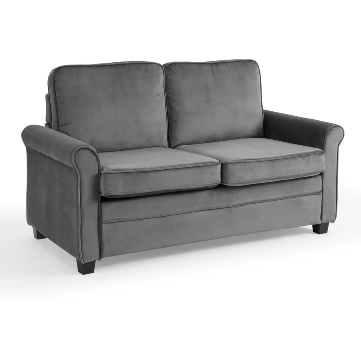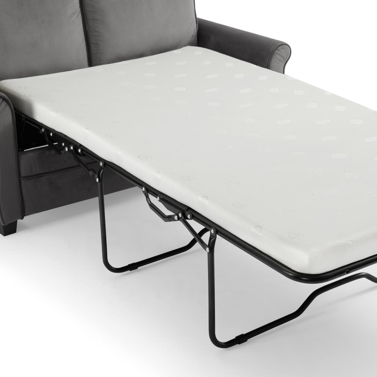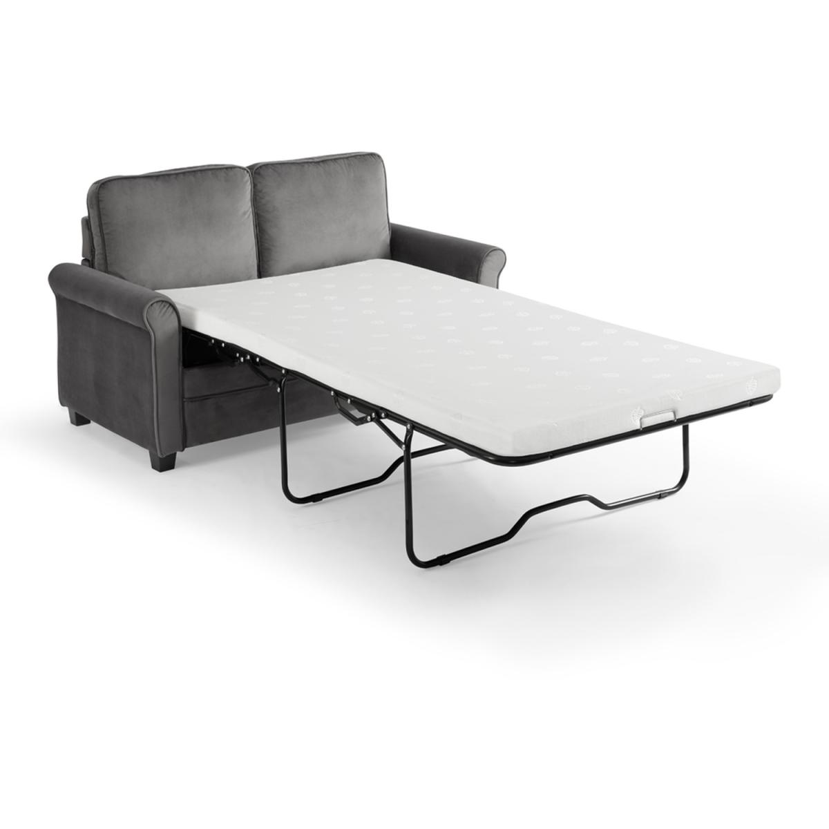 Introducing NATHAN our compact pull out sofa bed with mattress available in burnt orange and grey cord and blue and grey velvet. NATHAN can seat up to 2 people as a sofa and the sleeping area converts to the size of a small double as a sofa bed. NATHAN has a compact boxy design ideal for small spaces where living and sleeping are needed in one place. It has removeable cushions and 2 matching throw pillows and stands on dark wooden block feet. NATHAN has a convertible design with a simple lift out mechanism with a fold out mattress supported by metal framework. Cord is a woven material made of polyester. Cord is incredibly warm as it has the ability to trap air between its fibres, it is also hard wearing yet soft and durable. Cord is known for it striped patterning and its raised brushed pile that adds texture. Velvet is one of the most desirable upholstery fabrics. Its soft texture perfectly suits any piece of furniture and adds a touch of opulence and elegance. It is a woven polyester fabric with a short, thick, plush pile.