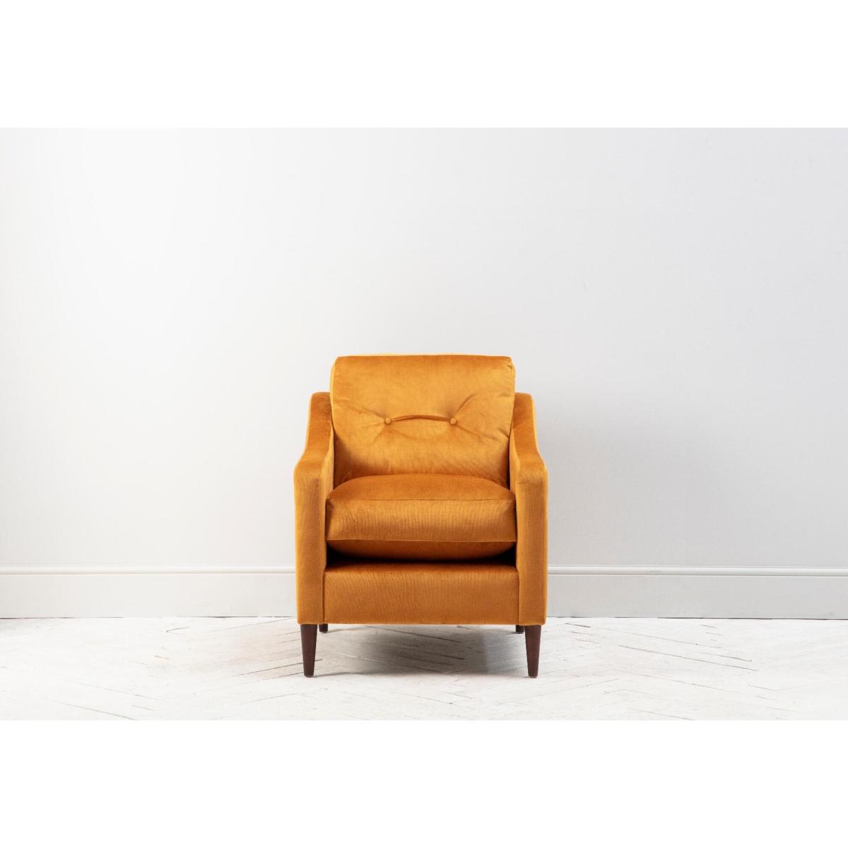 Bring out the style in your decor with our Nathan made to order armchair. Crafted by hand using a robust hardwood frame, this Mid-Century modern armchair with tapered legs and buttoned back has a dapper look that is ideal for the style conscious. Available in over a hundred fabrics to choose from, each Nathan is made to order by hand exclusively for you, and a heavenly match for interiors in need of some oomph.