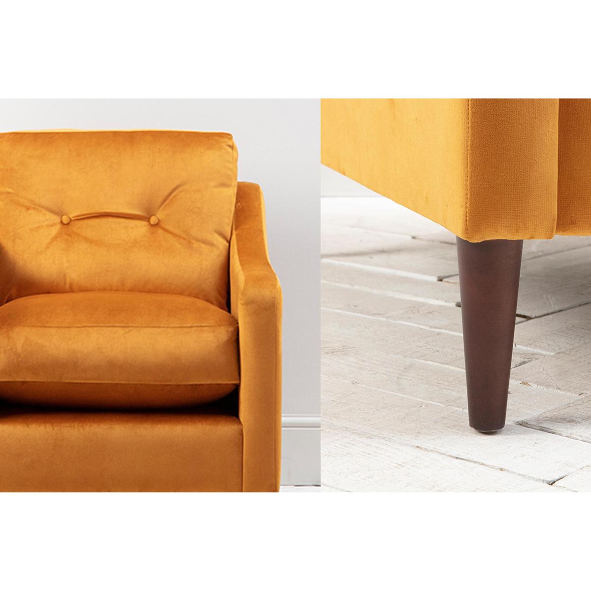 Bring out the style in your decor with our Nathan made to order armchair. Crafted by hand using a robust hardwood frame, this Mid-Century modern armchair with tapered legs and buttoned back has a dapper look that is ideal for the style conscious. Available in over a hundred fabrics to choose from, each Nathan is made to order by hand exclusively for you, and a heavenly match for interiors in need of some oomph.