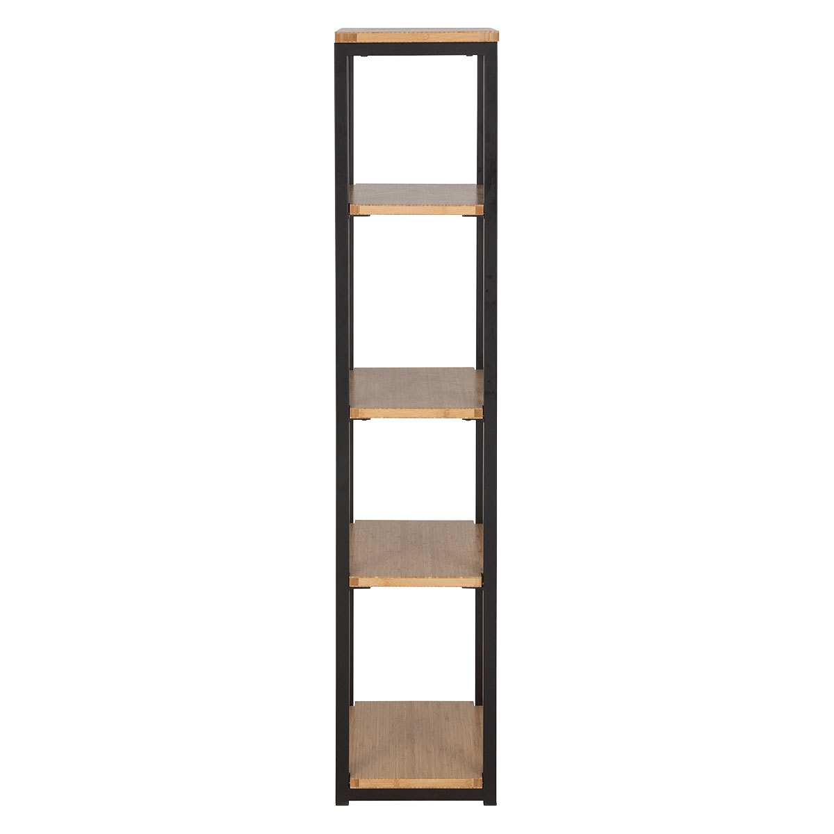 Durable yet elegant, the Nathan black and bamboo narrow bookcase showcases simplicity at its finest. Crafted from bamboo, a highly sustainable material, it has a unique grain pattern. The powder coated metal legs provide a sharp contrast to the design. With 4 spacious shelves, Nathan’s sleek profile will make an instant impact in any room its placed in. A versatile design, this bookcase can be attached to a matching desk to create a modular office space.