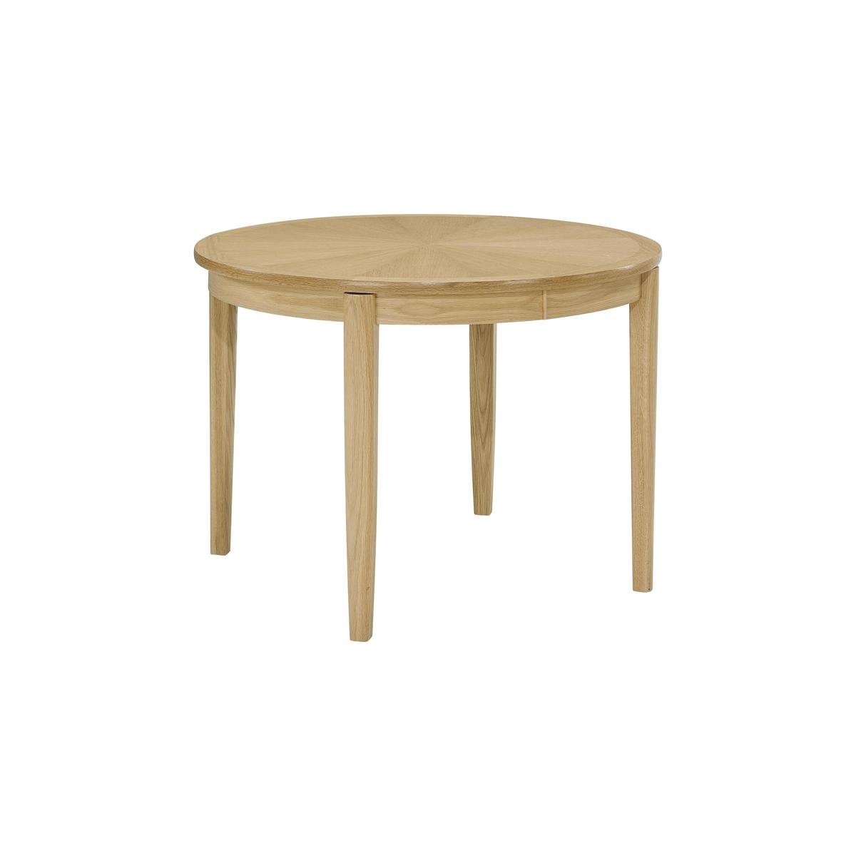 Elegant living and dining room furniture. Classic style with contemporary curves in oak or teak. Beautifully crafted in Britain by Nathan. Beautiful, stylish and very functional, the Nathan Shades circular extending dining table with sunburst top on legs is hard to match. Like everything that Nathan creates, this wonderful dining table is highly practical. The circular shape makes it easy to seat the whole family in comfort, and it also extends to seat 6. Simply pull the two table ends apart to create an attractive oval-shaped table and a butterfly extension leaf rises into place. Beautifully-crafted from solid wood and veneer and available in your choice of oak or teak, this dining table features a wonderful sunburst top – a pattern of radiating veneers, like the rays of a sun, with a subtle embellished edge – and finely-shaped tapered legs. Elegant and stylish, it has a contemporary feel that suits more modern homes, and yet is so well-crafted that it’s perfect for traditional dining room too. The Nathan Shades circular extending dining table with sunburst top on legs is made in Britain and yours at a great-value price. It’s part of the extensive Nathan Shades living and dining collection at Furniture Village. Did you know? Natural wood has unique markings, with some colour variation. The colour and tone of wood improves with age.