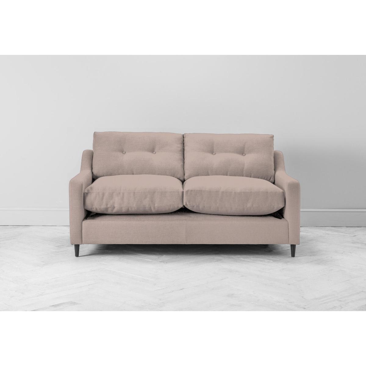 I love this two-seater in portrait pink for its playful yet versatile appeal. It works particularly well in contemporary and Scandinavian-inspired interiors, adding a pop of colour without overwhelming the space. Practical styling tips include pairing it with neutral or muted tones to let the pink stand out, or contrasting it with bold patterns for a more eclectic look. Its size makes it ideal for smaller living rooms or cosy corners, and layering with textured cushions or throws can help soften the overall aesthetic. Overall, it’s a stylish choice that brings both comfort and colour to a variety of interiors.