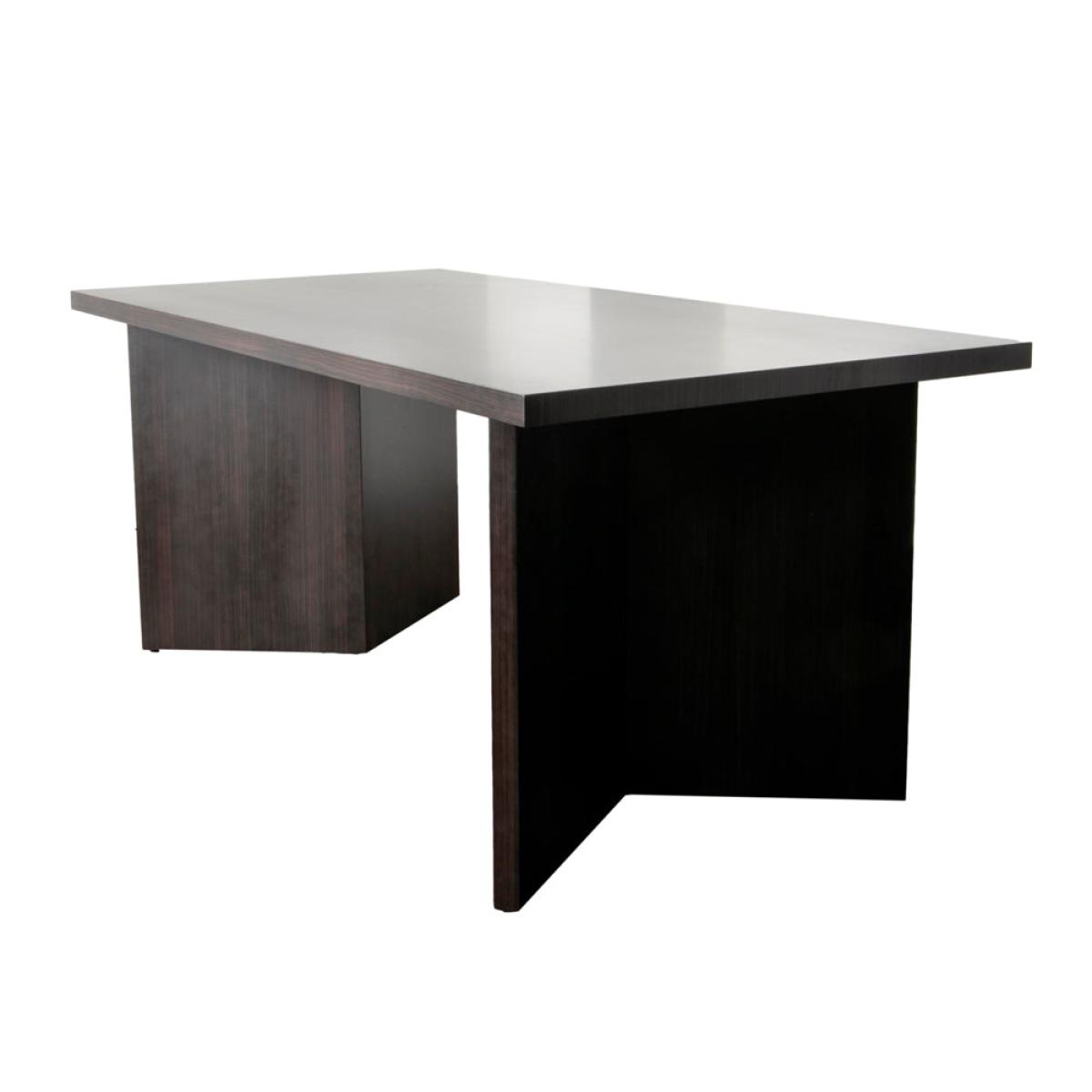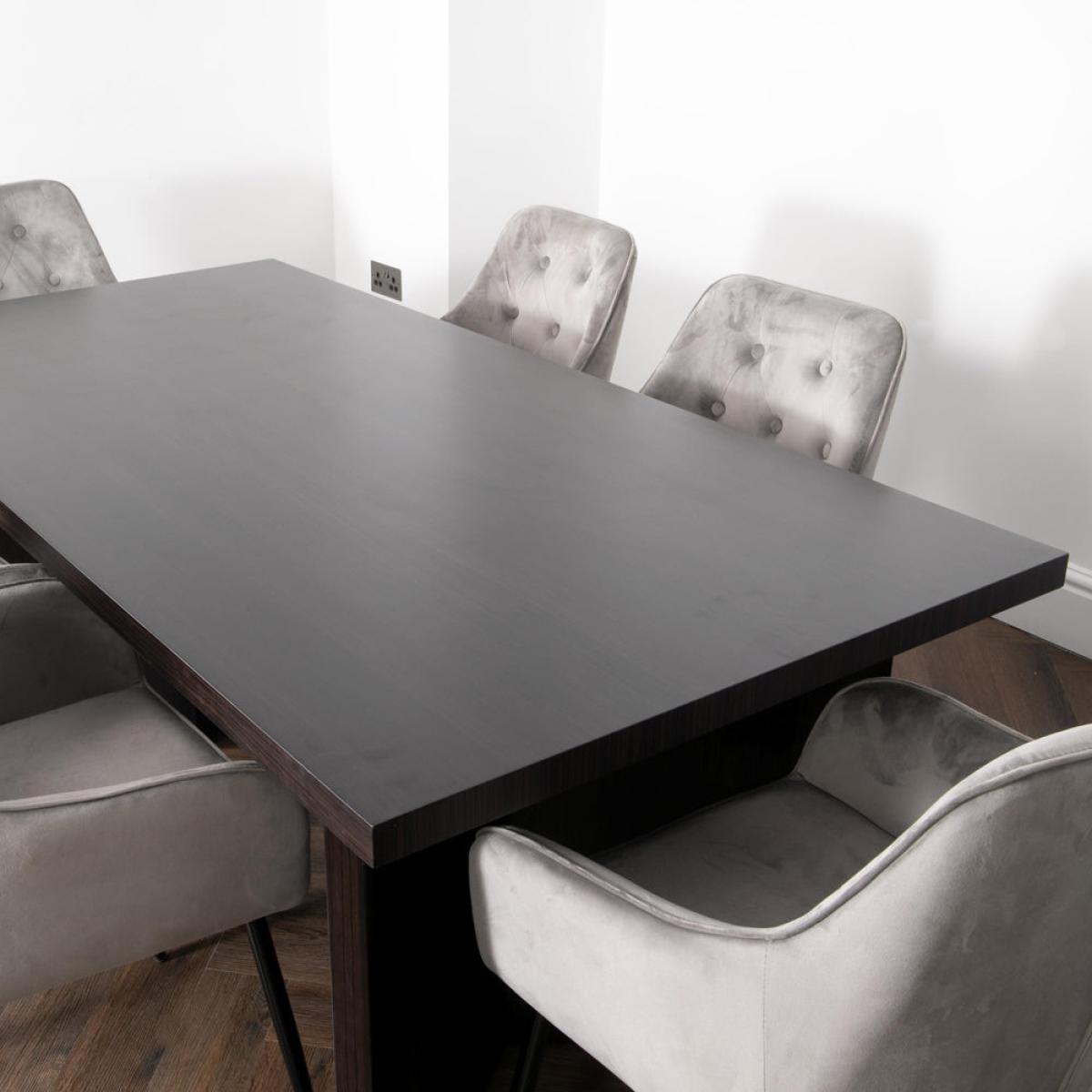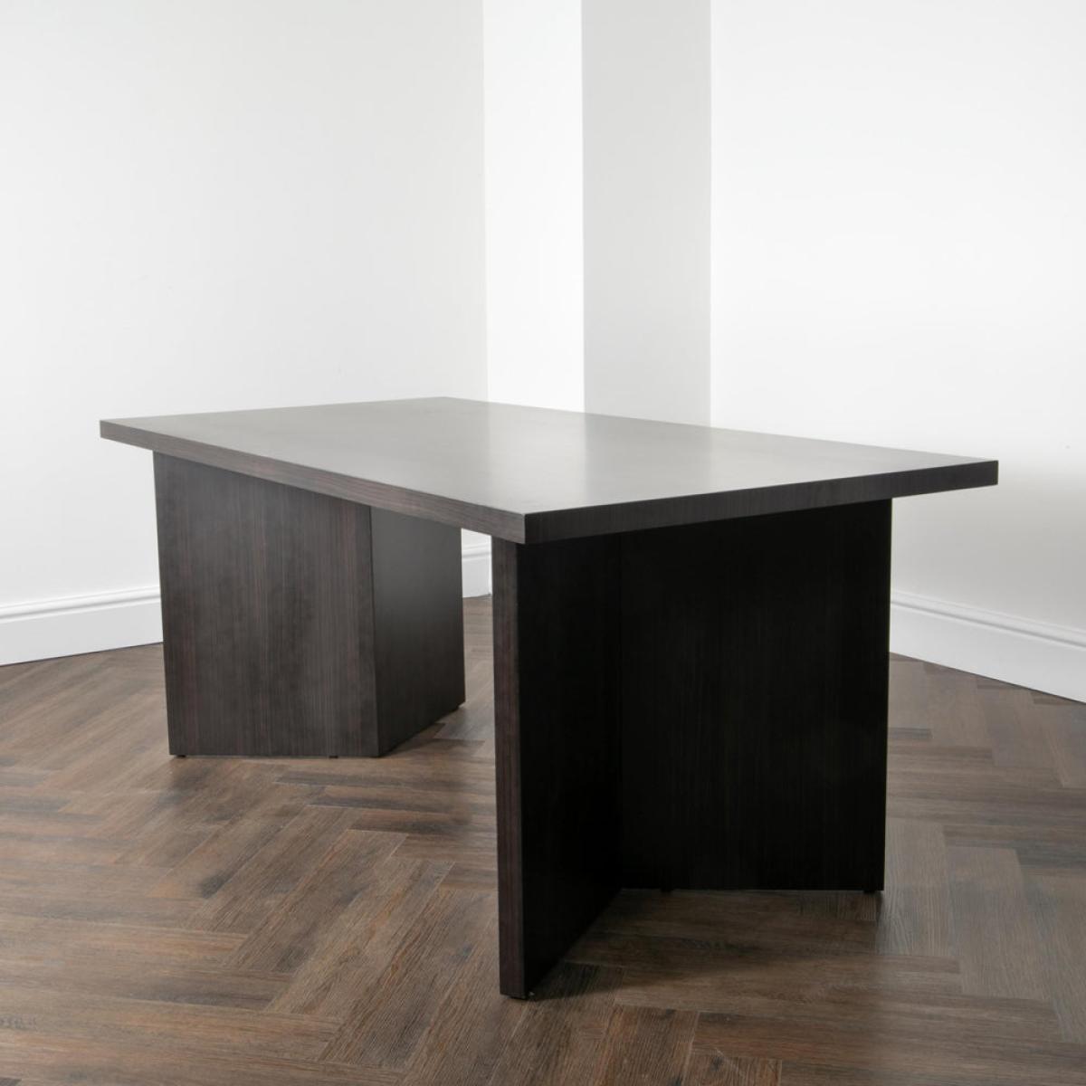 The Ascot Espresso Walnut Dining Table features a dark wood effect finish, it's dark tone makes it easy to style with a range of colours. This table can fit up to 6 chairs and has stunning v shaped. View More. The Ascot Espresso Walnut Dining Table features a dark wood effect finish, it's dark tone makes it easy to style with a range of colours. This table can fit up to 6 chairs and has stunning v shaped legs at either end. 180cm x 90 x 76cm. Made from manufactured wood.
