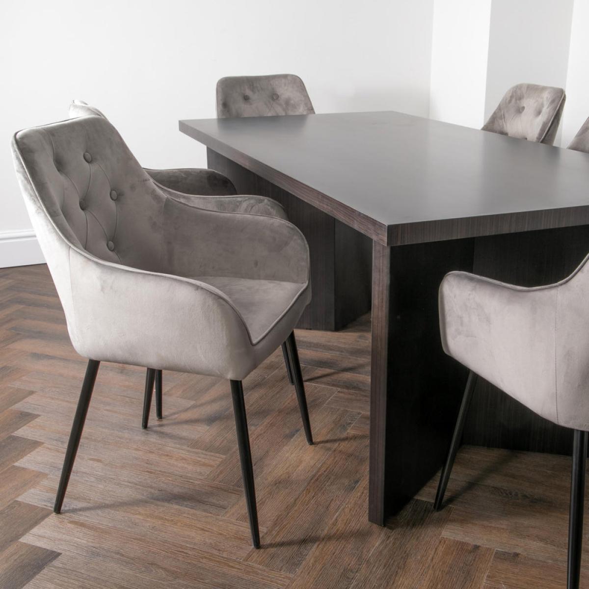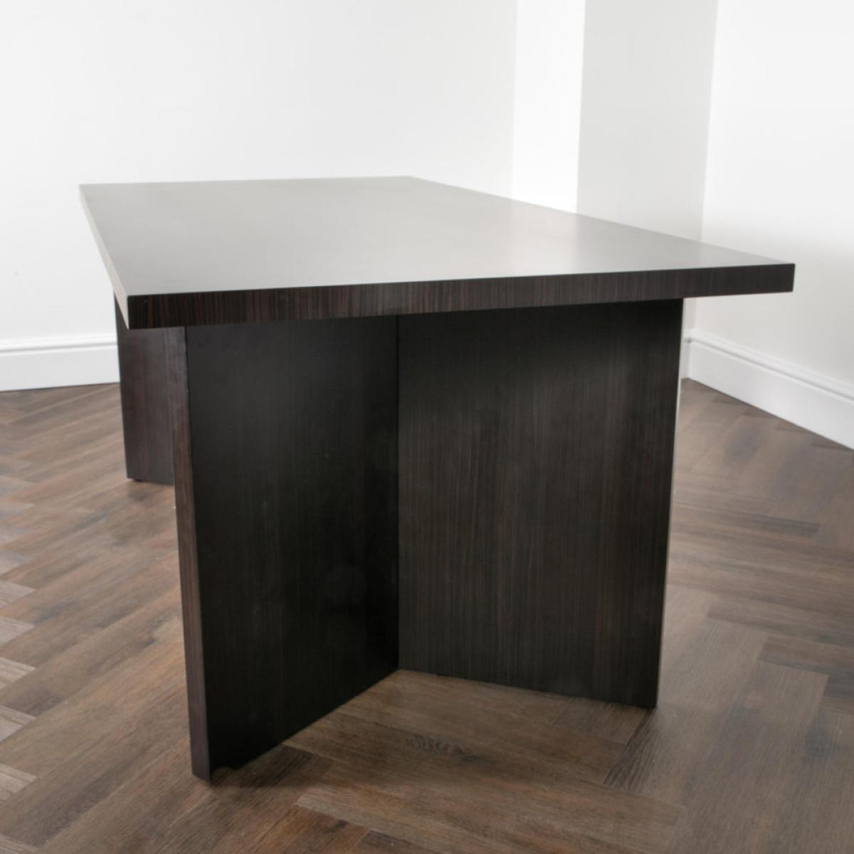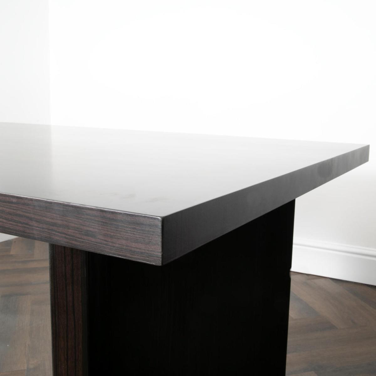 The Ascot Espresso Walnut Dining Table features a dark wood effect finish, it's dark tone makes it easy to style with a range of colours. This table can fit up to 6 chairs and has stunning v shaped. View More. The Ascot Espresso Walnut Dining Table features a dark wood effect finish, it's dark tone makes it easy to style with a range of colours. This table can fit up to 6 chairs and has stunning v shaped legs at either end. 180cm x 90 x 76cm. Made from manufactured wood.