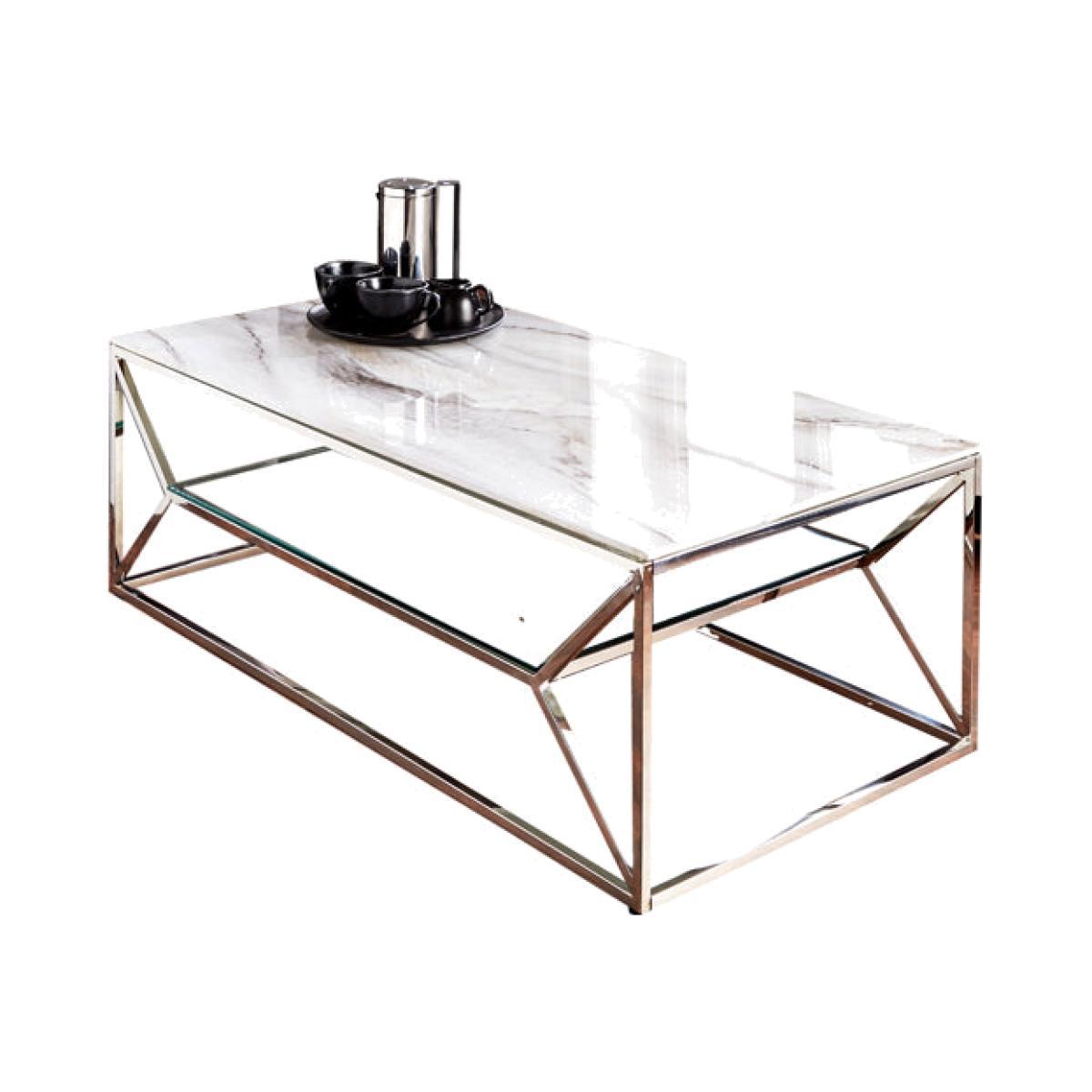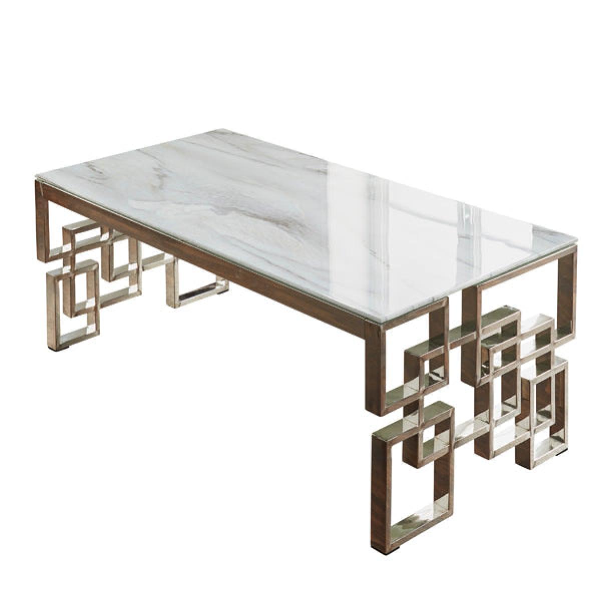 Native Home Coffee Table Marble Glass Silver / Silver / Large